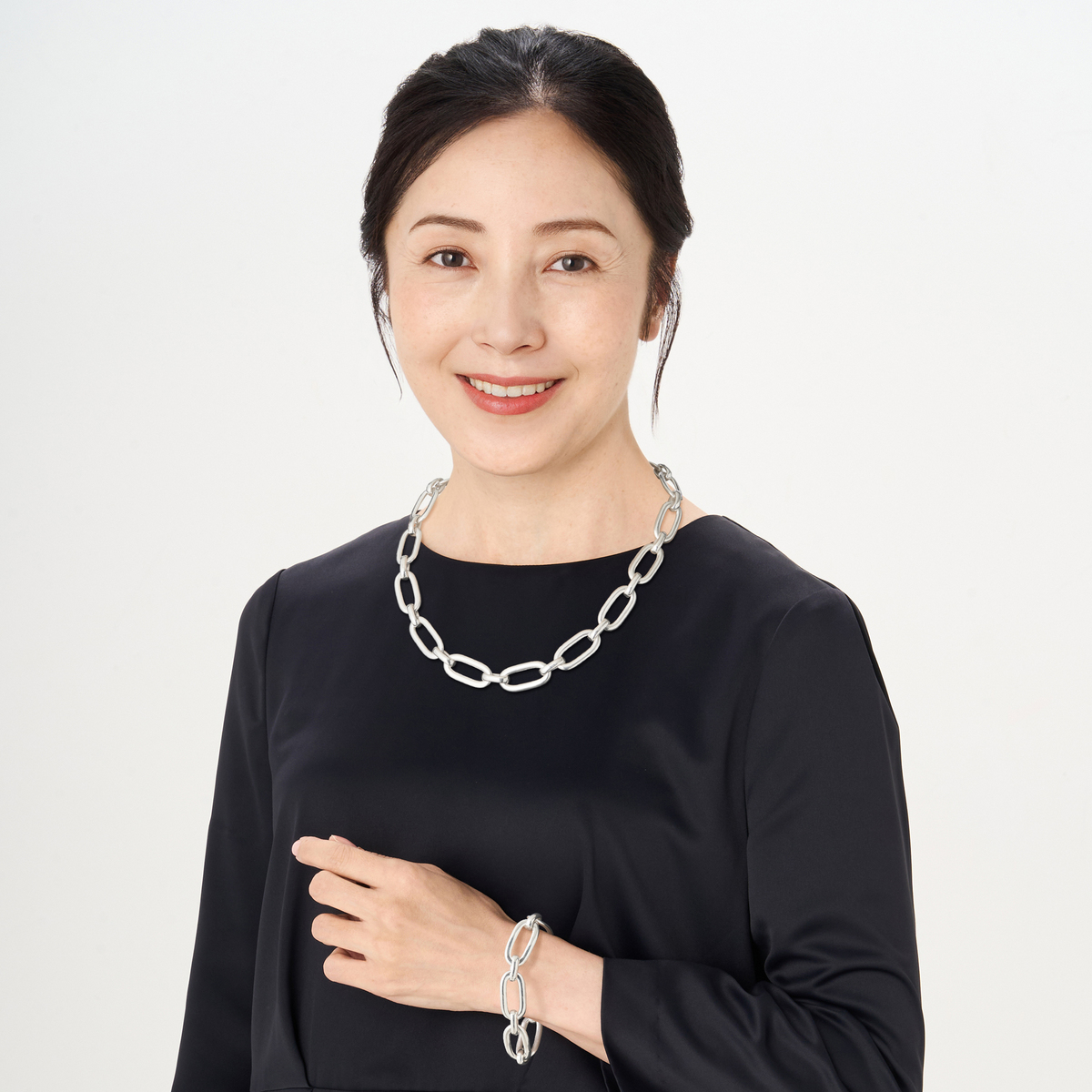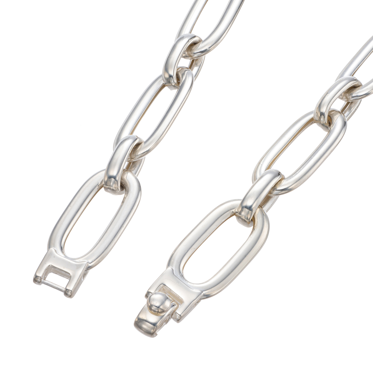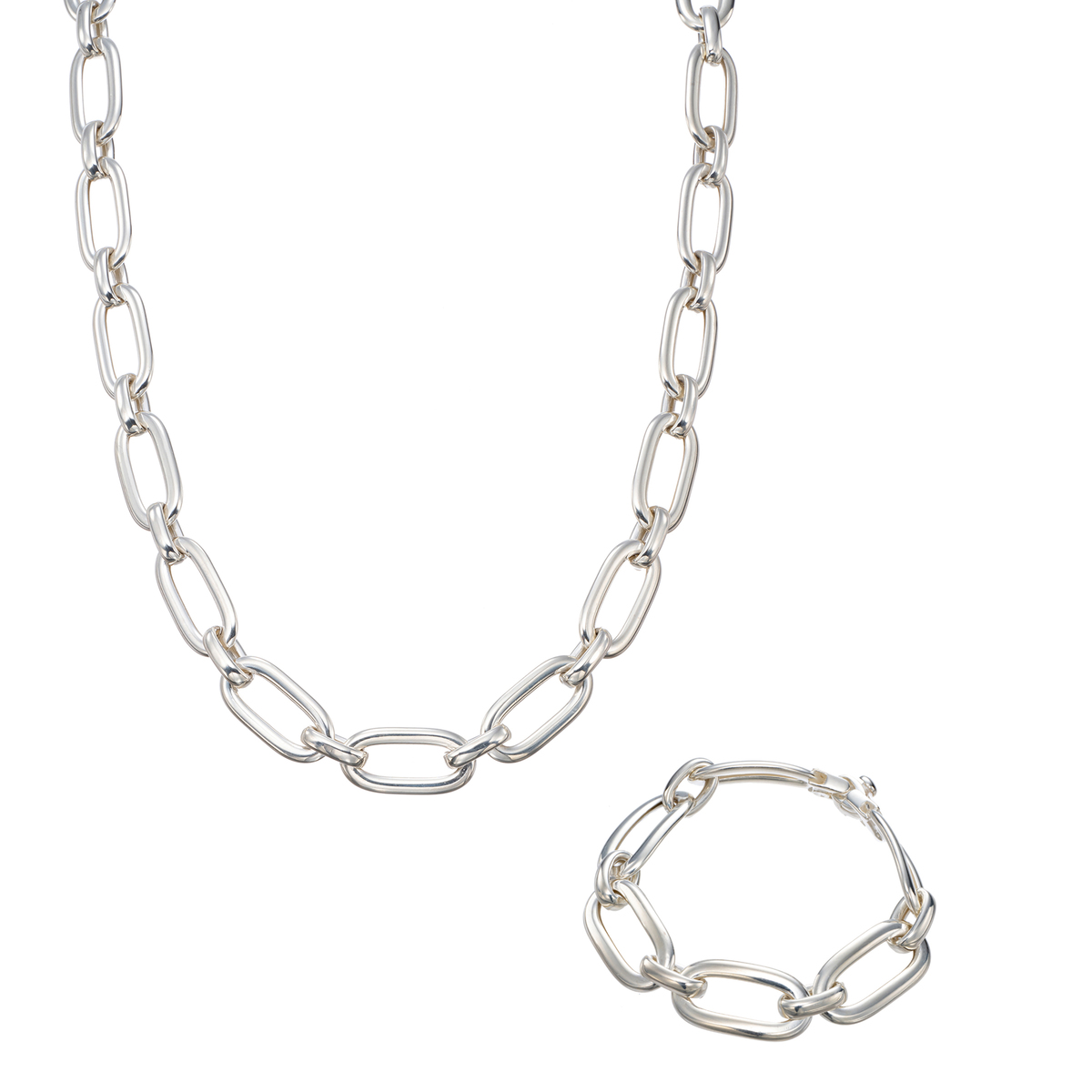 ゴージャスで力強い印象のチェーンネックレス&ブレスレット。地金にシルバー925を使い、規則的な鎖デザインに仕上げました