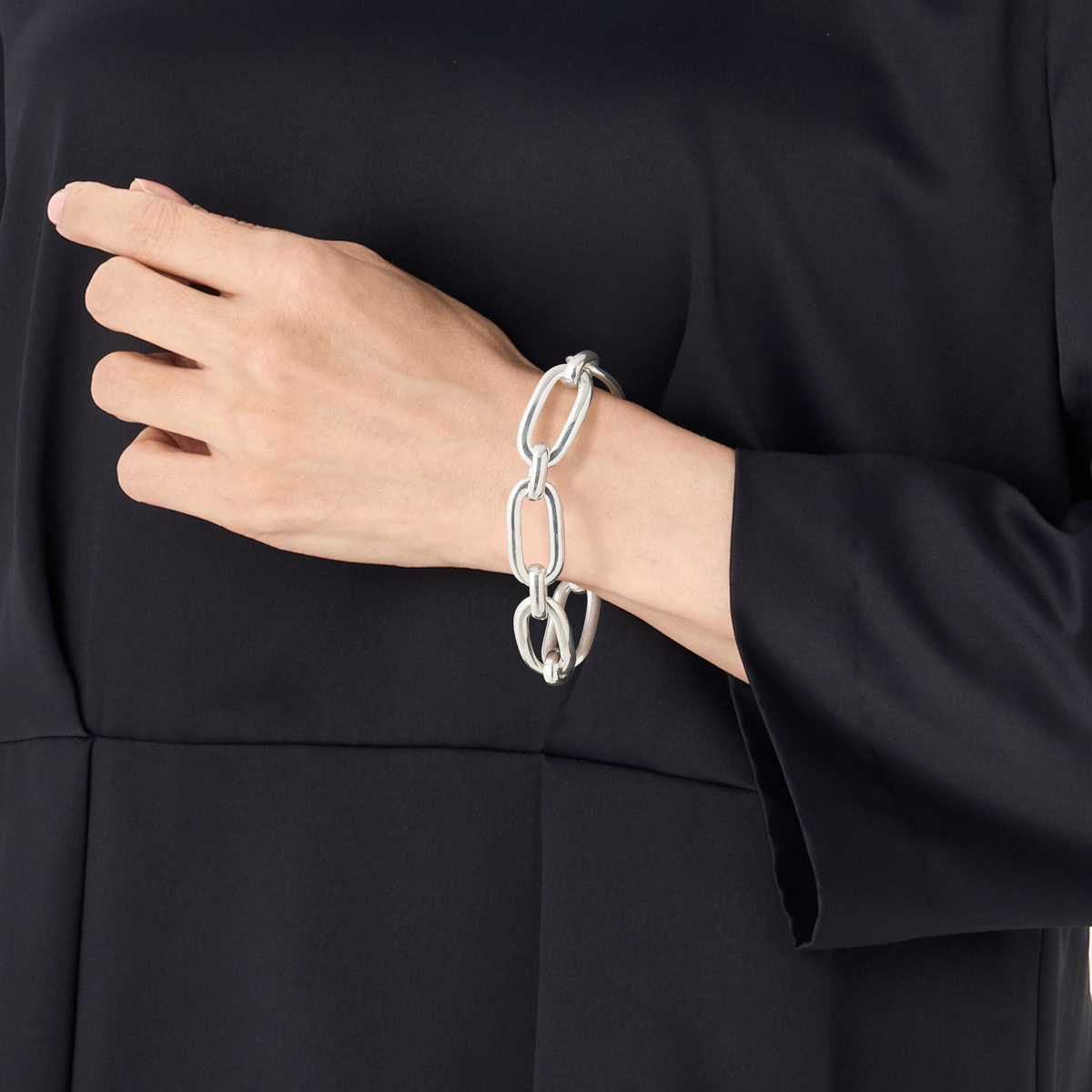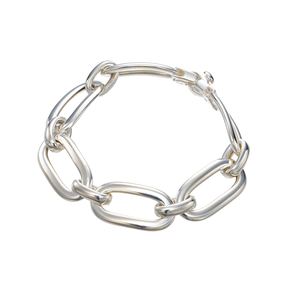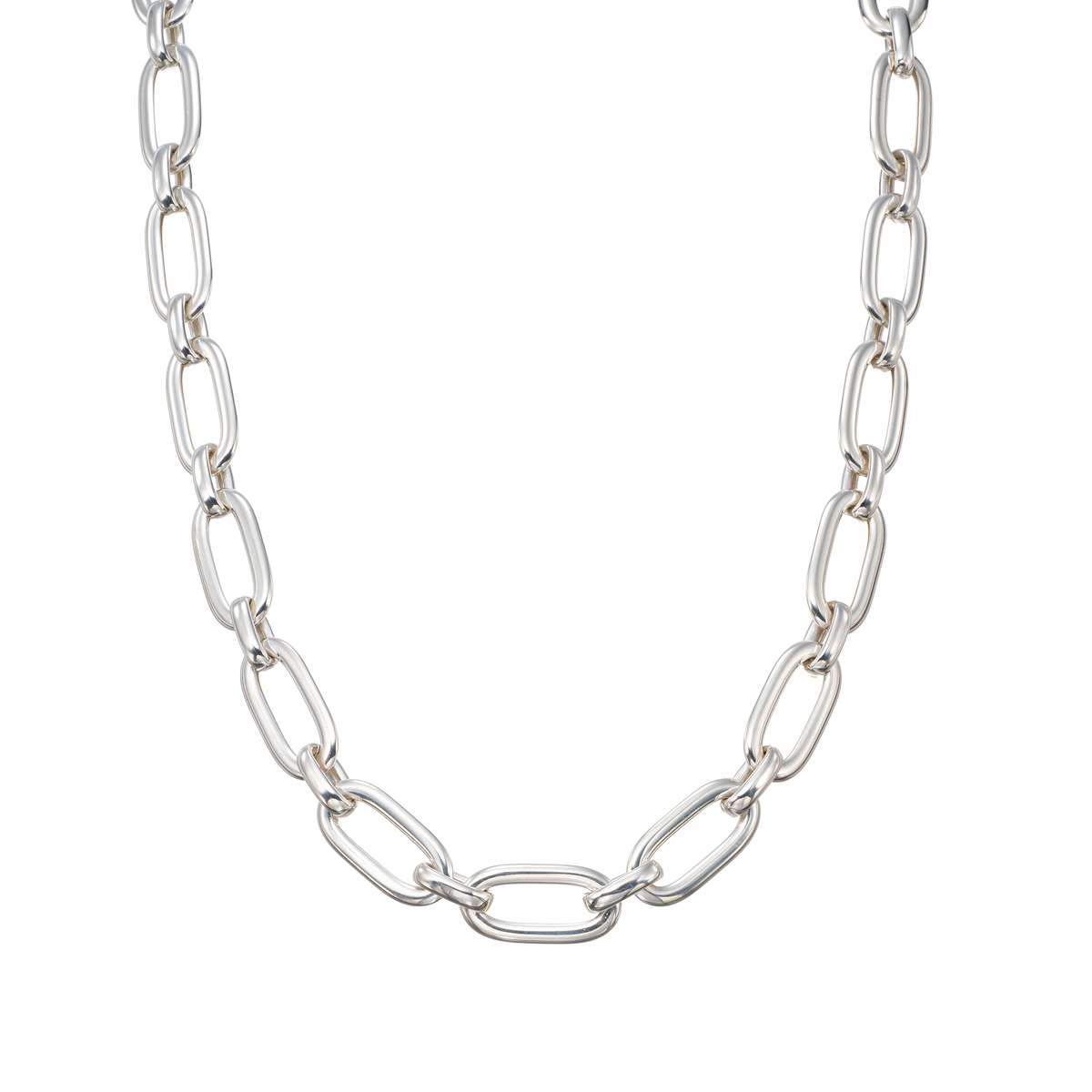 ゴージャスで力強い印象のチェーンネックレス&ブレスレット。地金にシルバー925を使い、規則的な鎖デザインに仕上げました