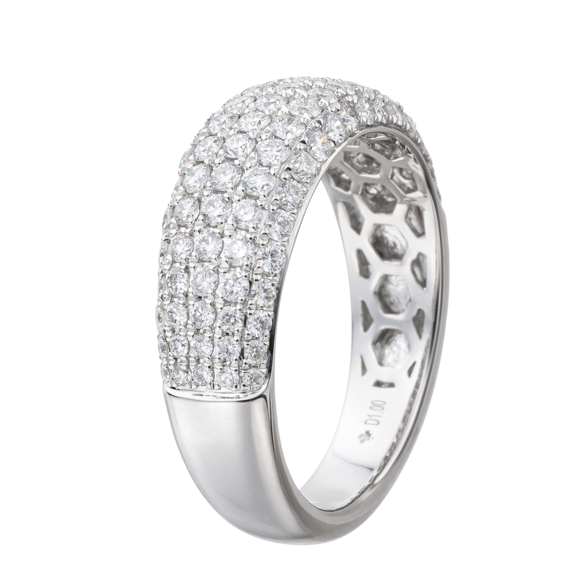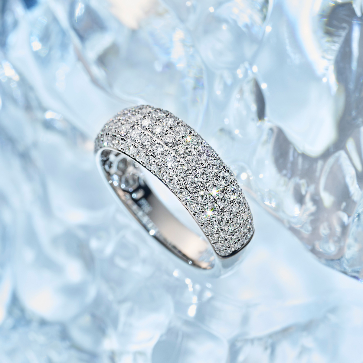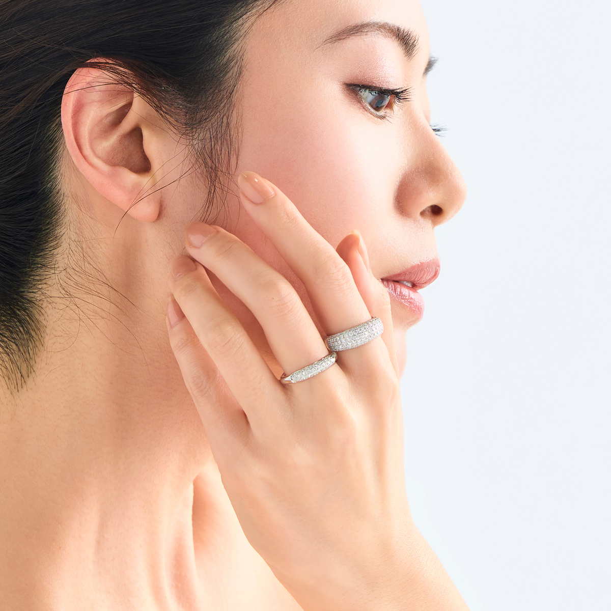 プラチナの気品ある輝きに、ダイヤモンドを細やかにあしらったパヴェリング。カナダの鉱山産ダイヤモンドを用いた、QVC25周年記念デザインです。ラウンドシェイプの石を美しく配し、合計1.00ctUPの煌めきがプラチナの光と響き合い、手元に凛とした気品をもたらします。産地証明カードを添えてお届けいたします