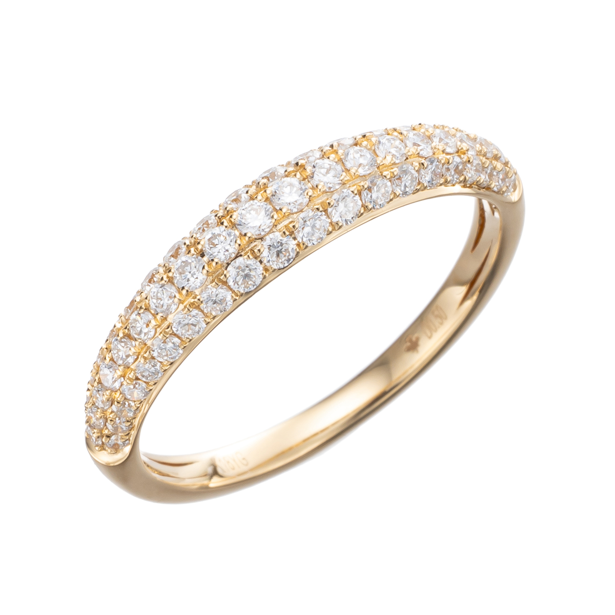 カナディアンダイヤモンドをあしらったリング。合計0.50ctUPのダイヤモンドを18Kイエローゴールドにセットし、手元に上品な存在感を添えます。カナダの鉱山産のみを使用し、産地証明カードも付属。日常にも特別な日にも取り入れやすい仕上がりです
