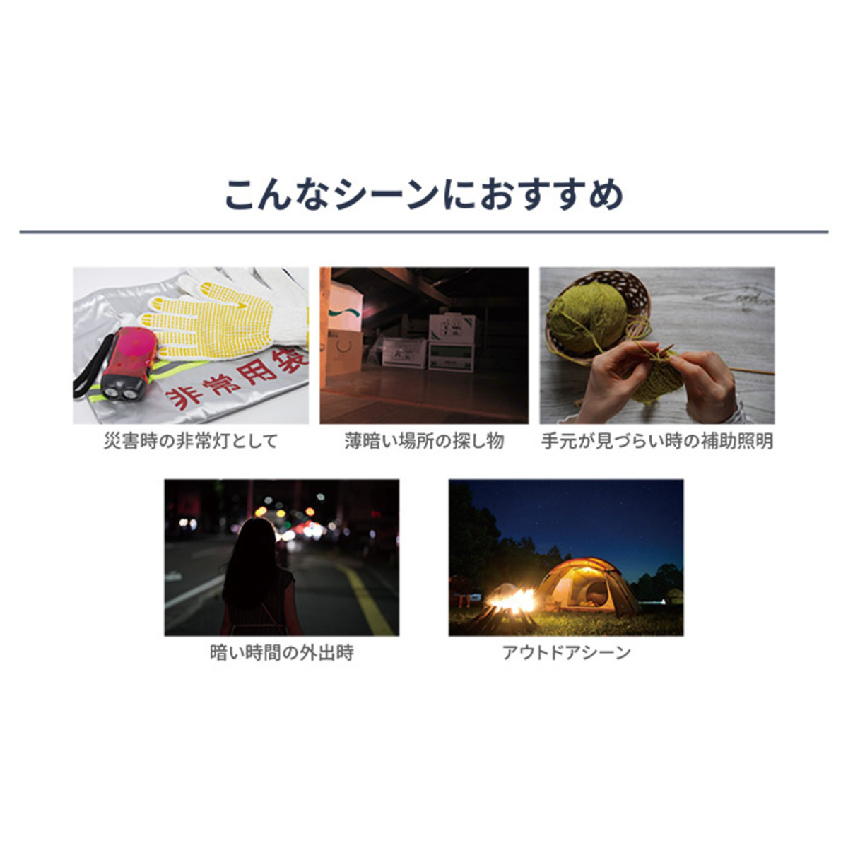 [商品内容] ・本体 ・充電用USBケーブル(Type A to C) ※ACアダプターは付属しておりません。ACアダプターは必ず5V/1.5A以上のものを使用してください [サイズ] 59×6.1×3.3cm [重量]約300g [充電時間]最大5時間 [使用可能時間(約)] High:2時間 Low:4時間 [全光束] High:800lm Low:600lm [使用方法] <充電方法> 1.本体の充電プラグ差込口のキャップを外し、USBケーブルの充電プラグを差し込みます 2.USBケーブルのUSBプラグをACアダプター(市販品)のUSBポートに差し込みます。充電が始まるとランプが赤く点灯します。点灯しない場合はすべての接続を確認してください 3.充電が完了するとランプが緑の点灯に切り替わります。すべての接続を取り外してください <点灯> 消灯した状態から、スイッチを押すごとにLEDライトが点灯します <バッテリーの電池残量について> 点灯中、内蔵バッテリーの電池残量が少なくなるとランプが赤く点滅した後に消灯します。消灯したら電池残量はありません。充電してください <マグネットでの吸着> 本製品はライト部とベルト部が2か所のマグネット と面ファスナーで固定されています。ライト部を面ファスナーから取り外し、マグネットでお好きな場所に吸着して使用することができます ■取り扱い説明を充分にご確認の上、ご使用下さい 【中国製】 [注意事項] ※充電時は必ず付属のUSBケーブルをご使用ください ※火中・水中に入れないこと ※雨や水に濡らさないこと ※高温となる環境で充電しないこと。例:直射日光が当たる場所や車中 ※高い場所から落下させたり、強い衝を与えた場合は使用しないこと ※点灯させたまま放置・保管しないこと ※トンネル工事などの専門的な作業には使用しないでください ※LEDライトを直視したり、人や動物に向けて照射しないでください ※充電する前に必ず本体が十分冷めていることを確認してください ※フル充電状態のバッテリーを再充電しないでください ※ほこりの多い場所で充電しないでください ※マグネットは強力なものを使用しております。取り外しの際は傷がつくおそれがありますので十分に注意してください。また、精密機器・磁気カード・時計・方位磁針等、磁気を嫌うものには絶対に近づけないでください [お手入れ] 汚れの著しい場合は、ブラシで汚れを取り除き布で拭き取ってください 直射日光の当たらない・風通しの良い・乾燥した・お子様の手の届かない安全な場所、又は鍵のかかる場所にきちんと保管してください 高温となる環境に放置しないでください。例:直射日光が当たる場所や車中 ご自分で分解・改造・修理をしないでください 長期間(6か月以上)使用しない場合は、満充電にして保管してください