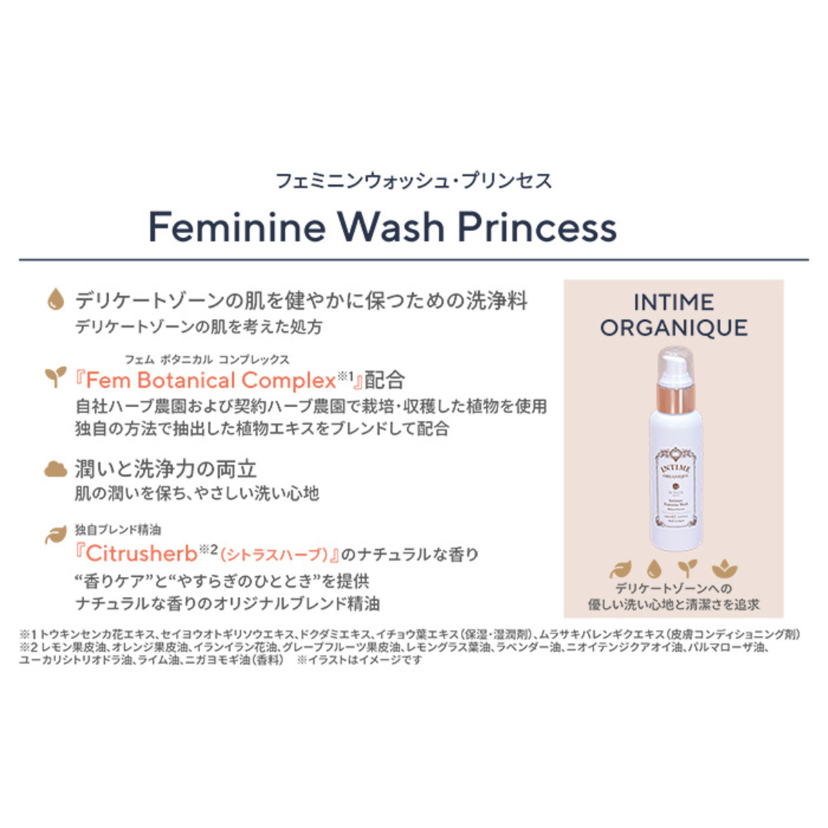 デリケートゾーンの肌を健やかに保つための洗浄料。18種類の保湿・湿潤成分(*1)と、独自で抽出またはブレンドした植物エキス「フェムボタニカルコンプレックス」(*2)を配合しています
