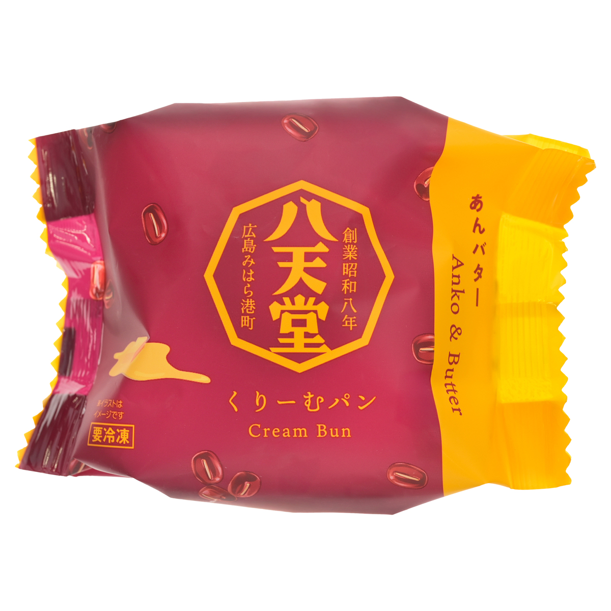 八天堂のクリームと餡子、バターを入れた(*)3層のくりーむパン。電子レンジで温めることでより一層美味しくお召し上がりいただけます