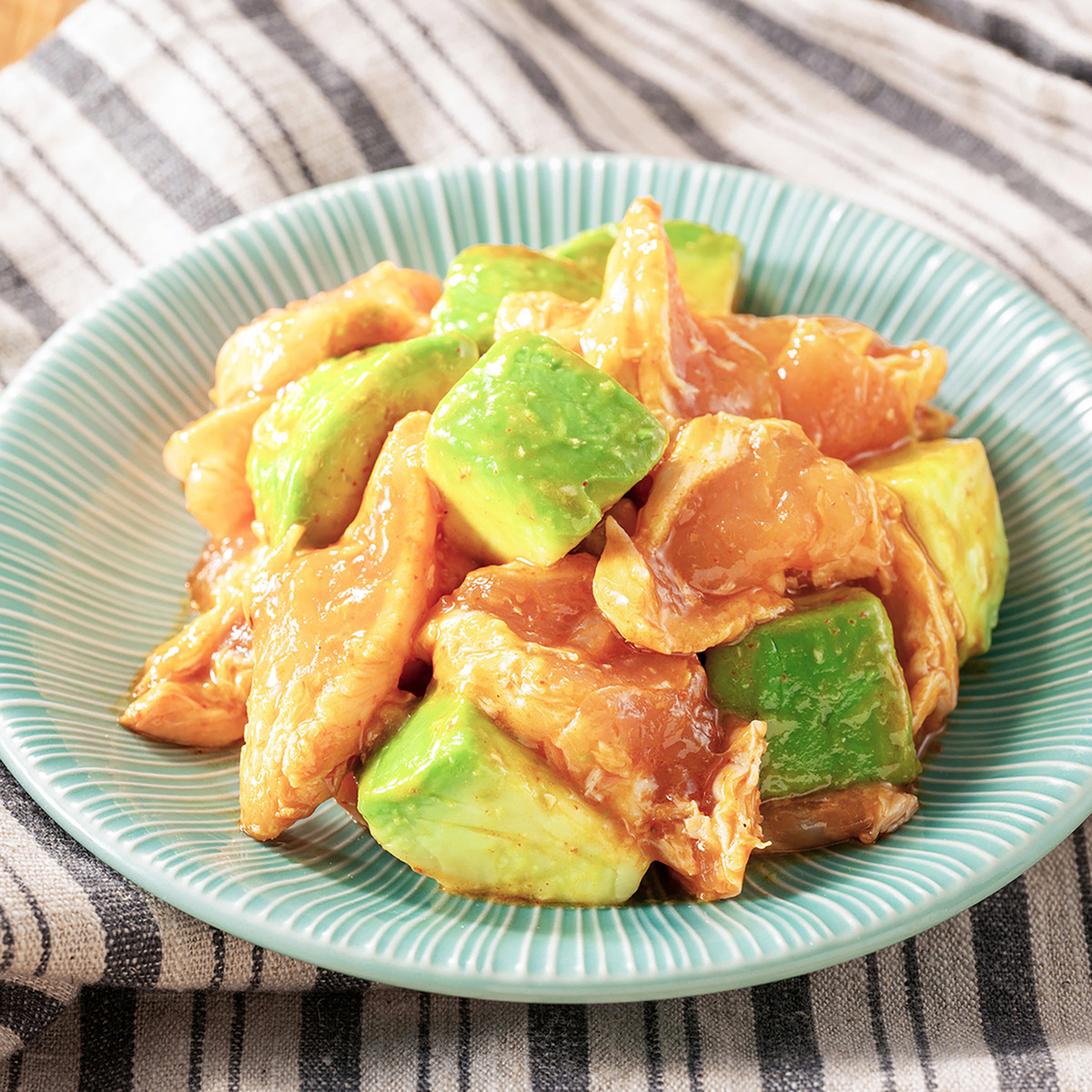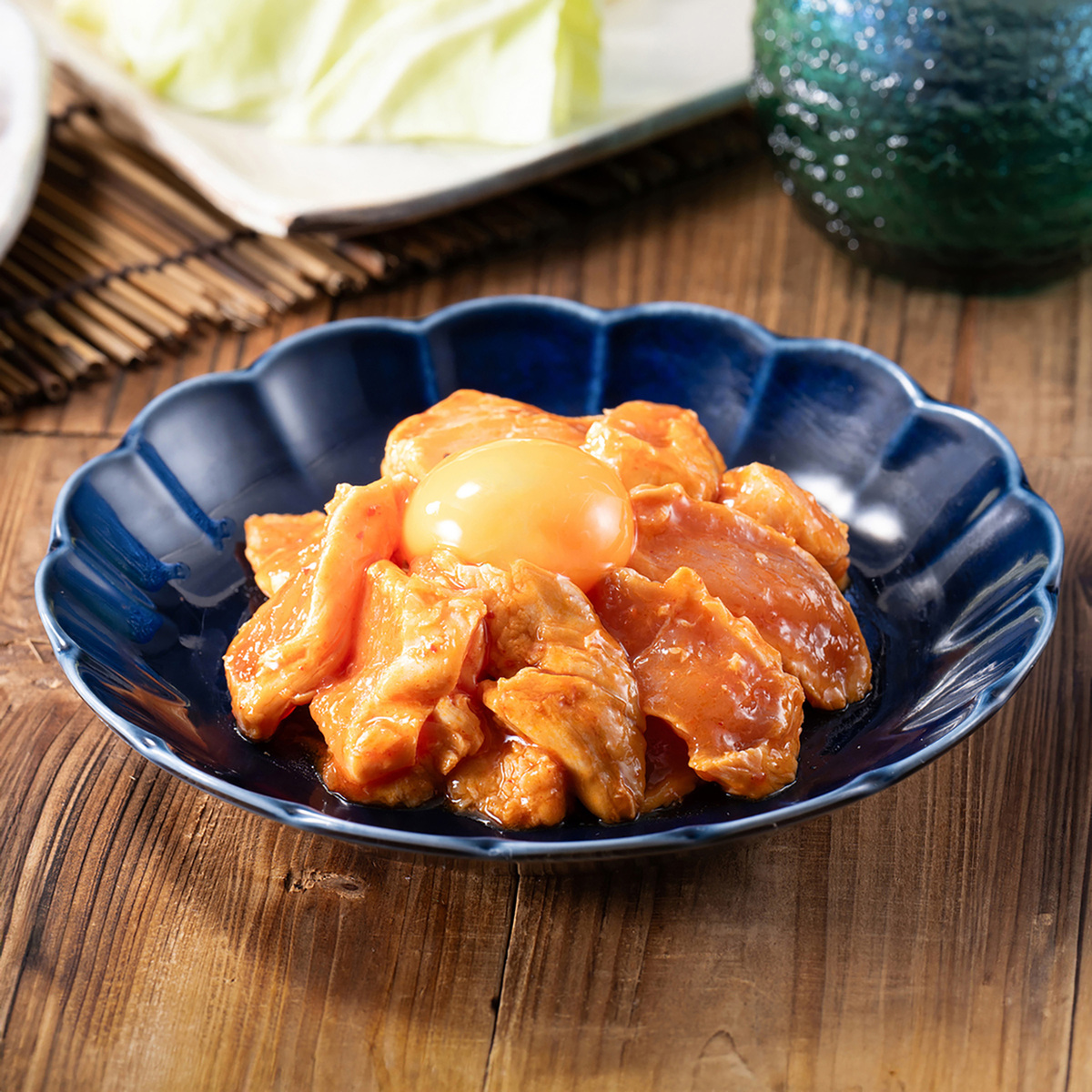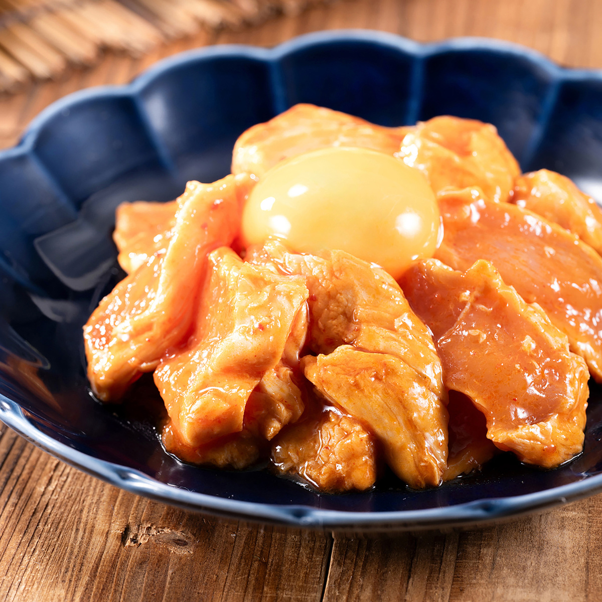 醤油・ごま油をベースに、おろしにんにく・コチュジャン・豆板醤・XO醤などを使用した韓国風の特製ピリ辛タレを使用。肉質が柔らかく淡白な味わいのささみを使用することで、しっかりとした味付けのタレともよく絡まります