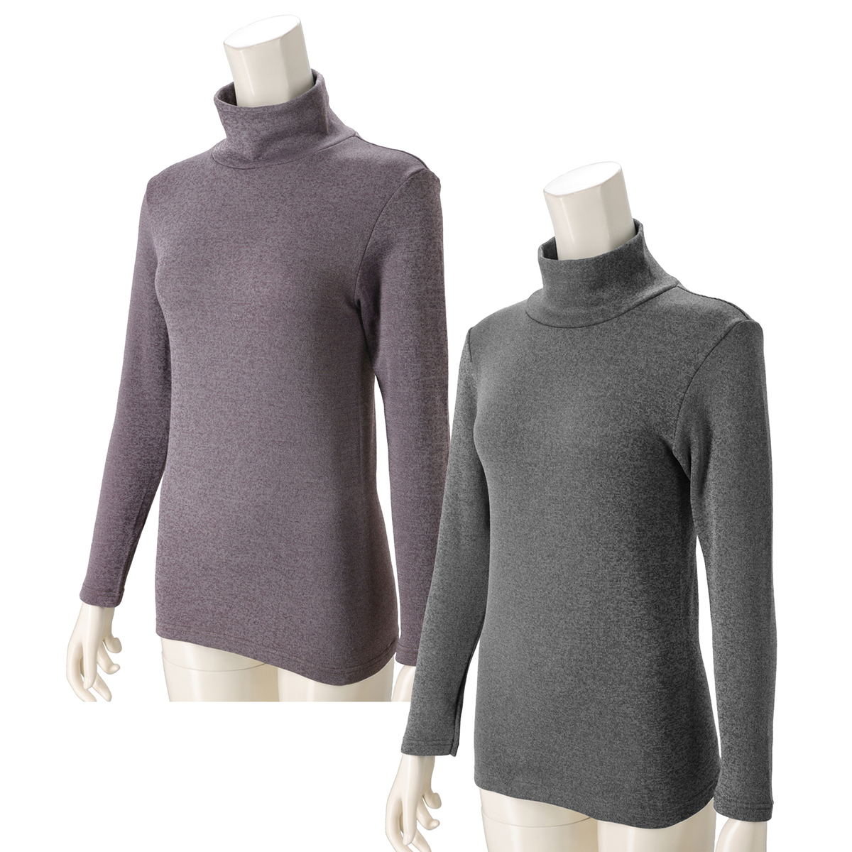 首元からの冷気をシャットアウトするハイネックタイプ。袖丈も長めに設計し、手首までしっかりカバーします。ストレッチ性のある、やわらかな着心地で動きやすく。脇には縫い目のない丸編み仕様。縫い目によるゴロつきがなく、チクチク感や違和感を軽減します