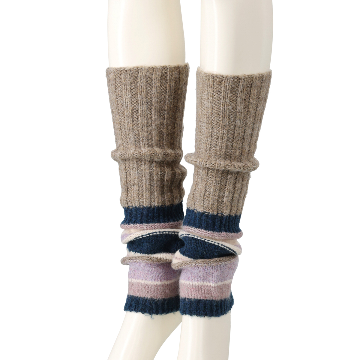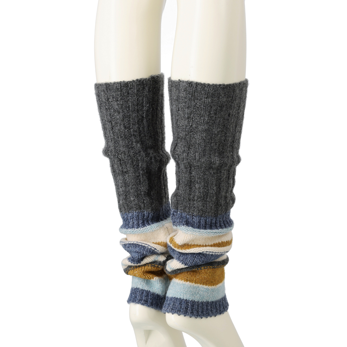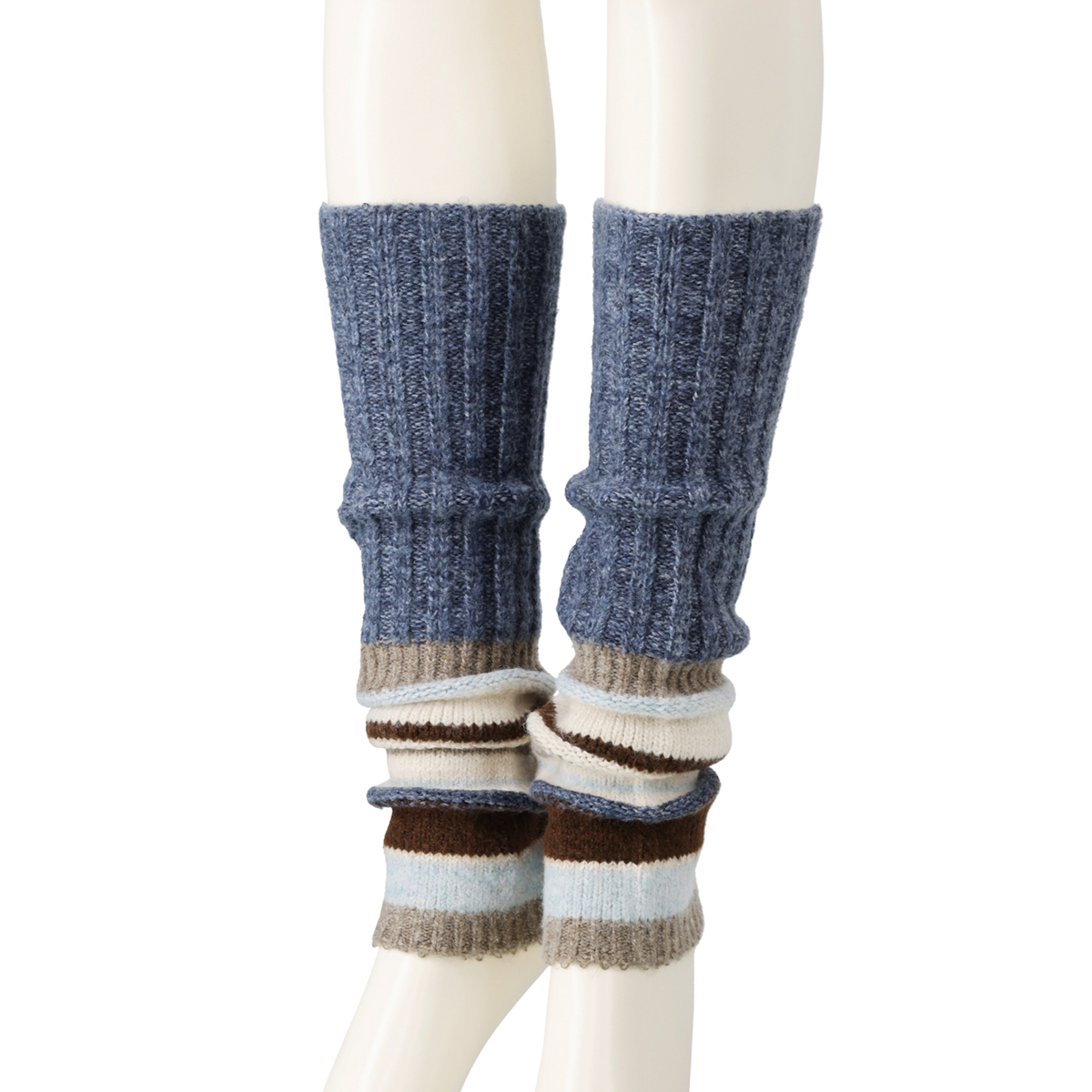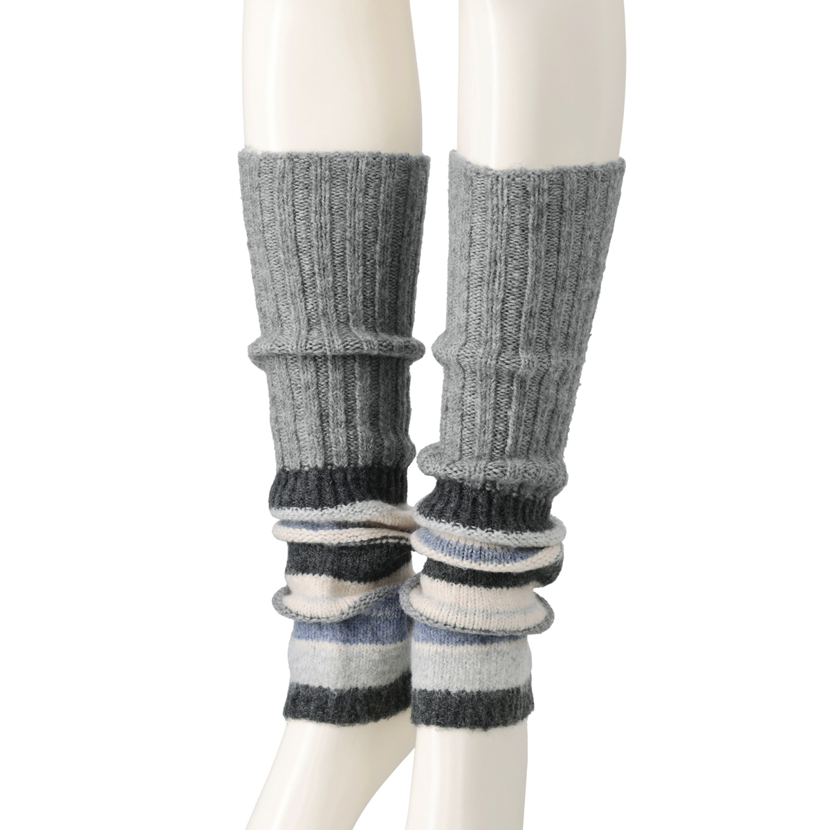 リブ編み、天竺編みなどの複数の編地を組合せて仕上げた、なめらかな風合いのレッグウォーマーです。ウール混の糸を使用しているので、寒い日もぽかぽかあったか。使用糸の一部に吸湿発熱糸を使用しています