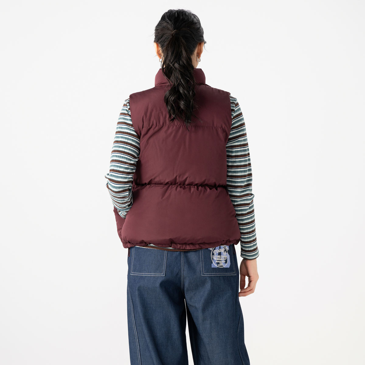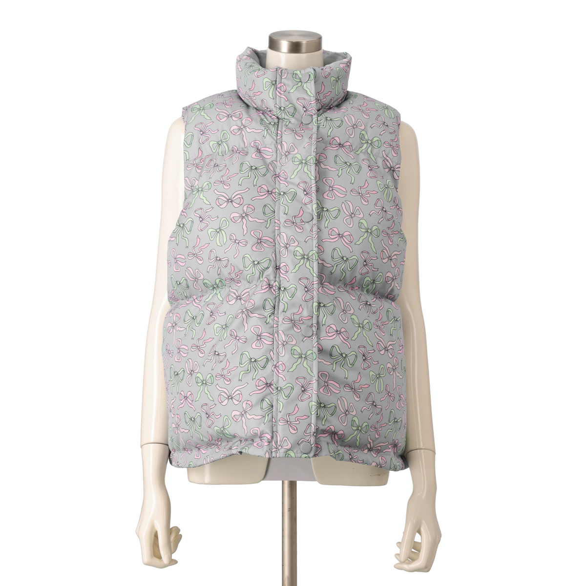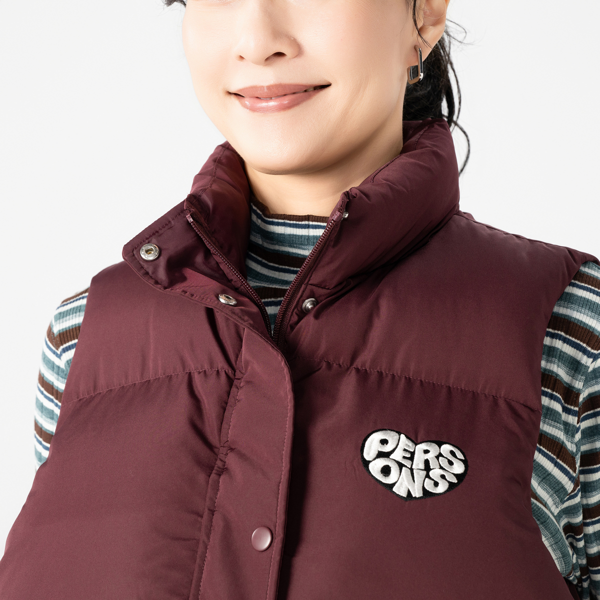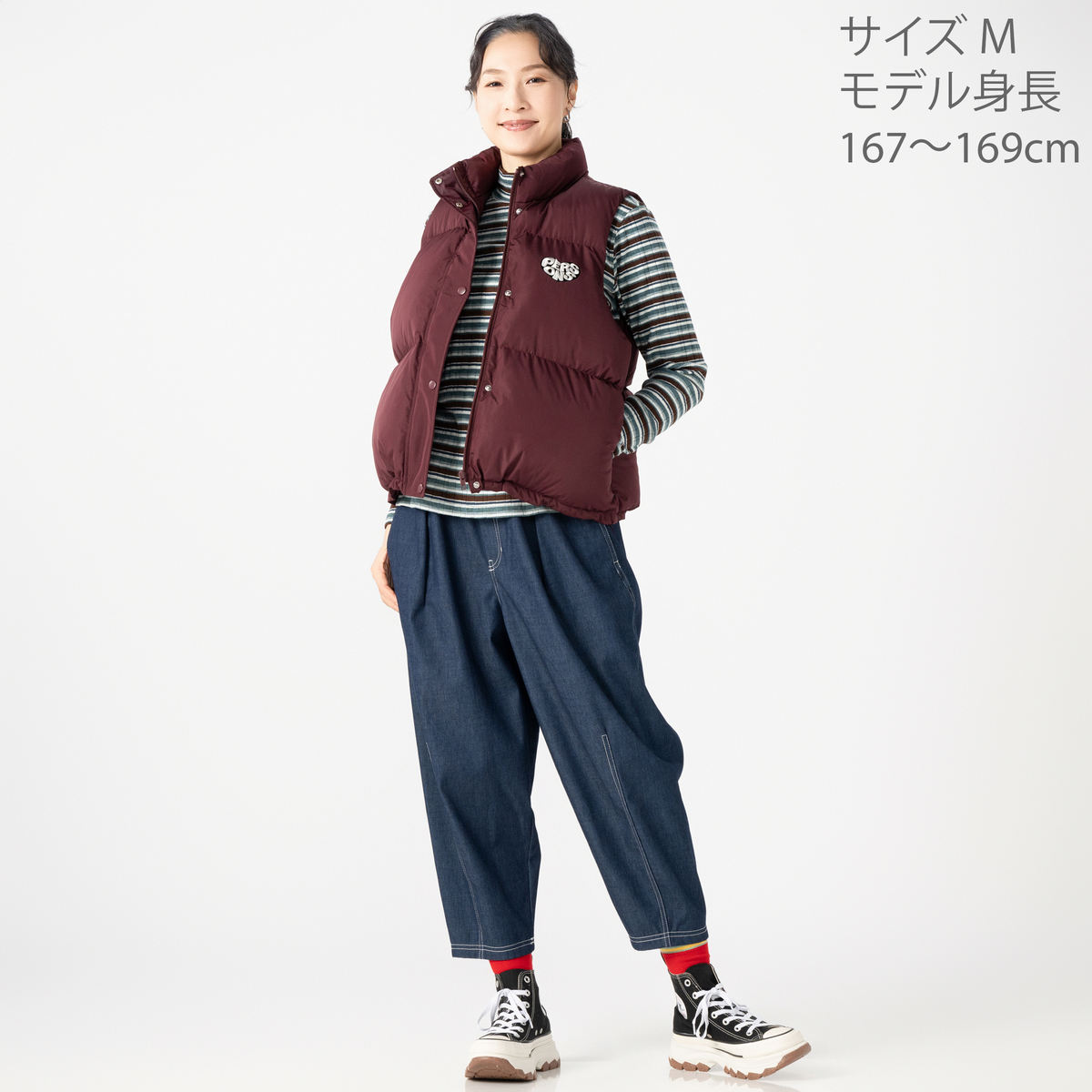 シルエットにこだわった前開きジップアップ中綿ベスト。ボクシーシルエット見えする様にパターンニングし、若々しい印象に。裾のドロストを絞るとバルーンシルエット風になり、可愛いらしい雰囲気にアレンジできます