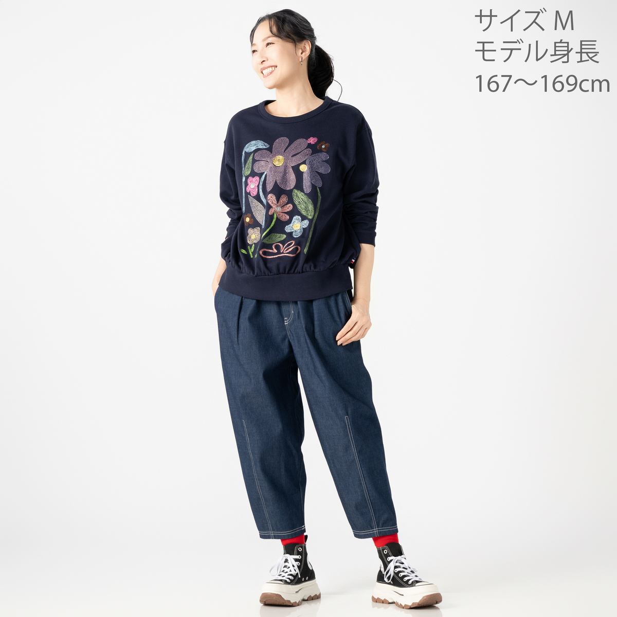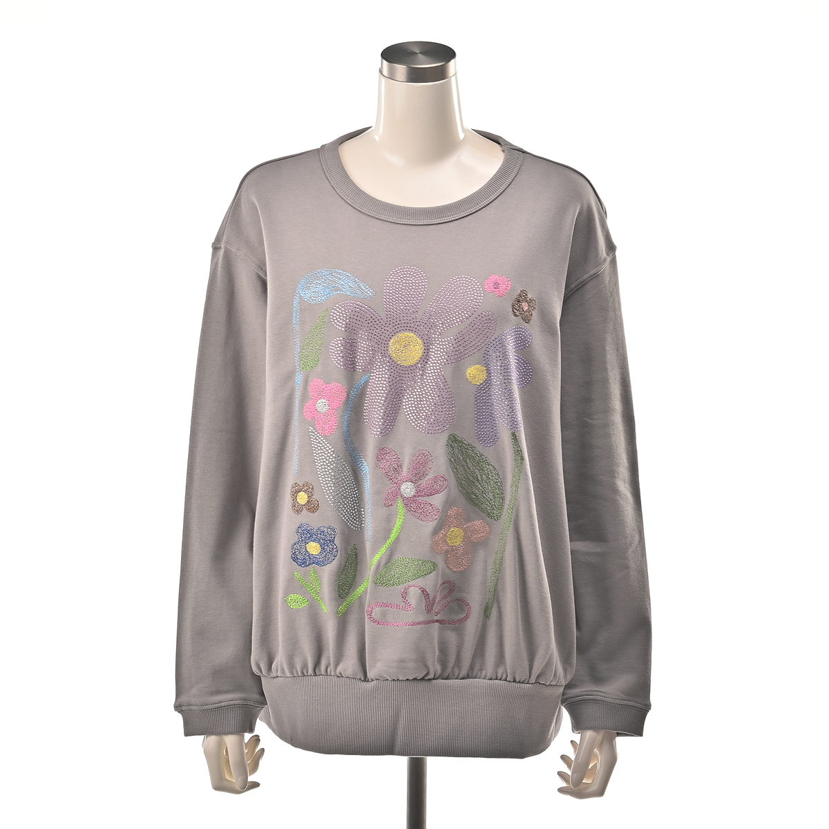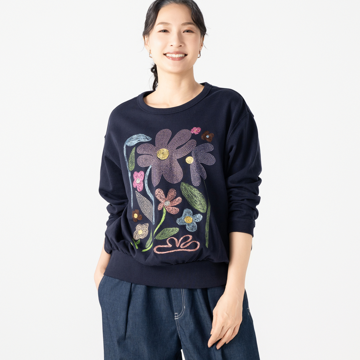 No. 750898 PERSONS 刺繍&ラインストーンフラワースウェット