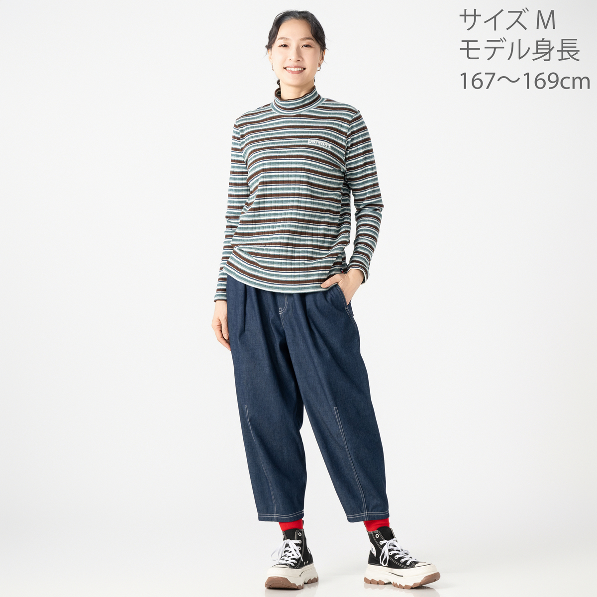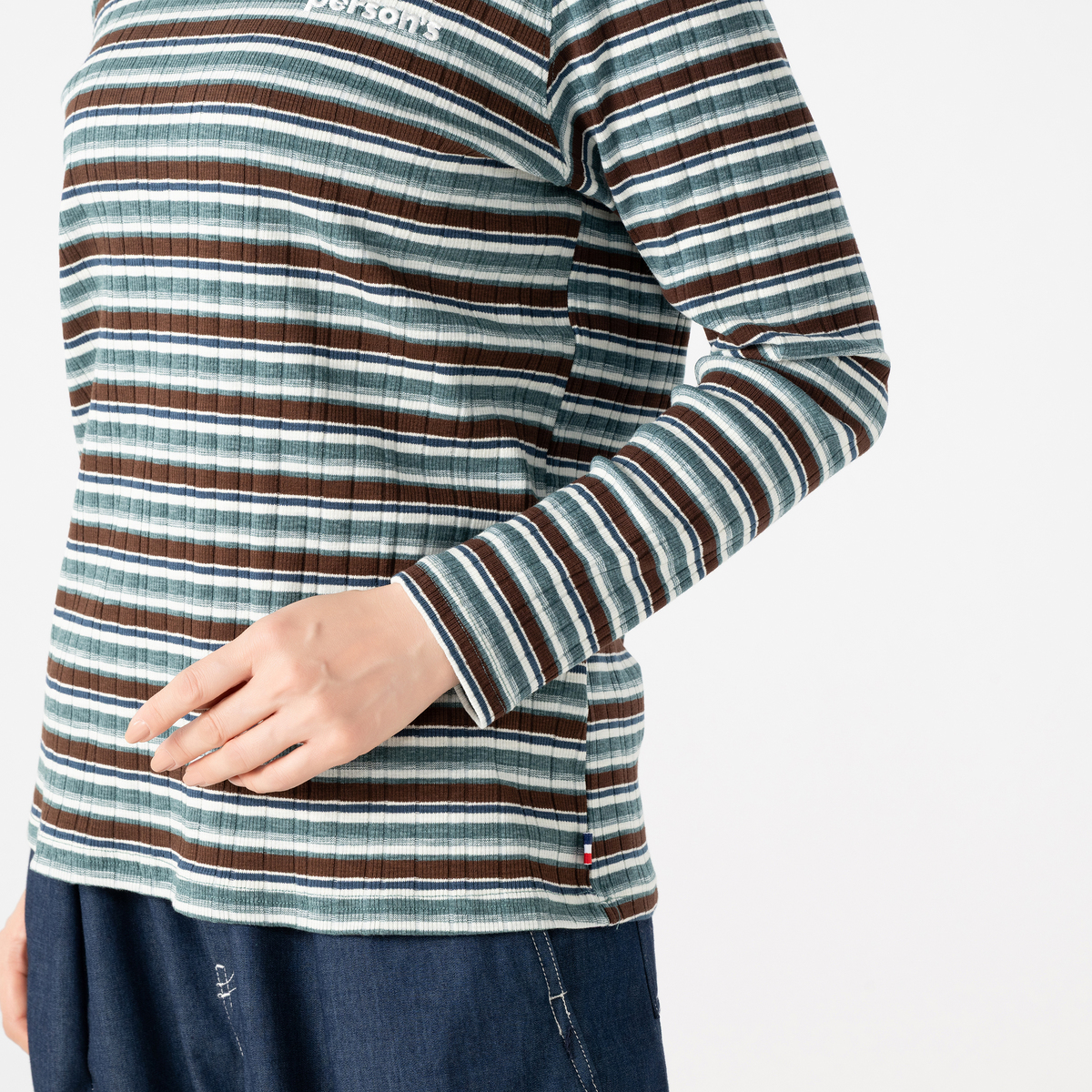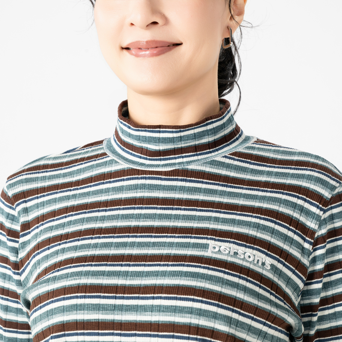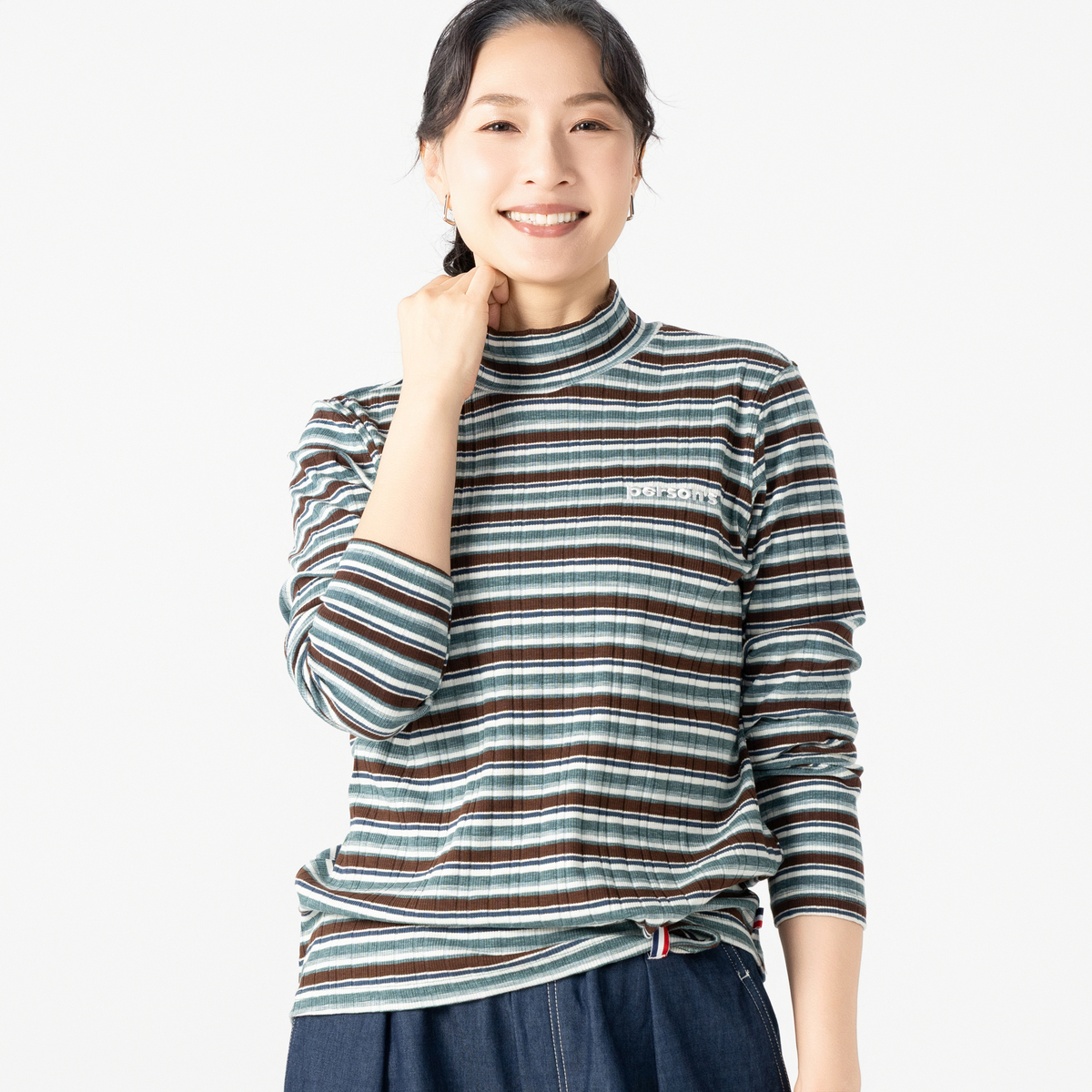 No. 750904 PERSONS テレコマルチボーダーハイネックトップス