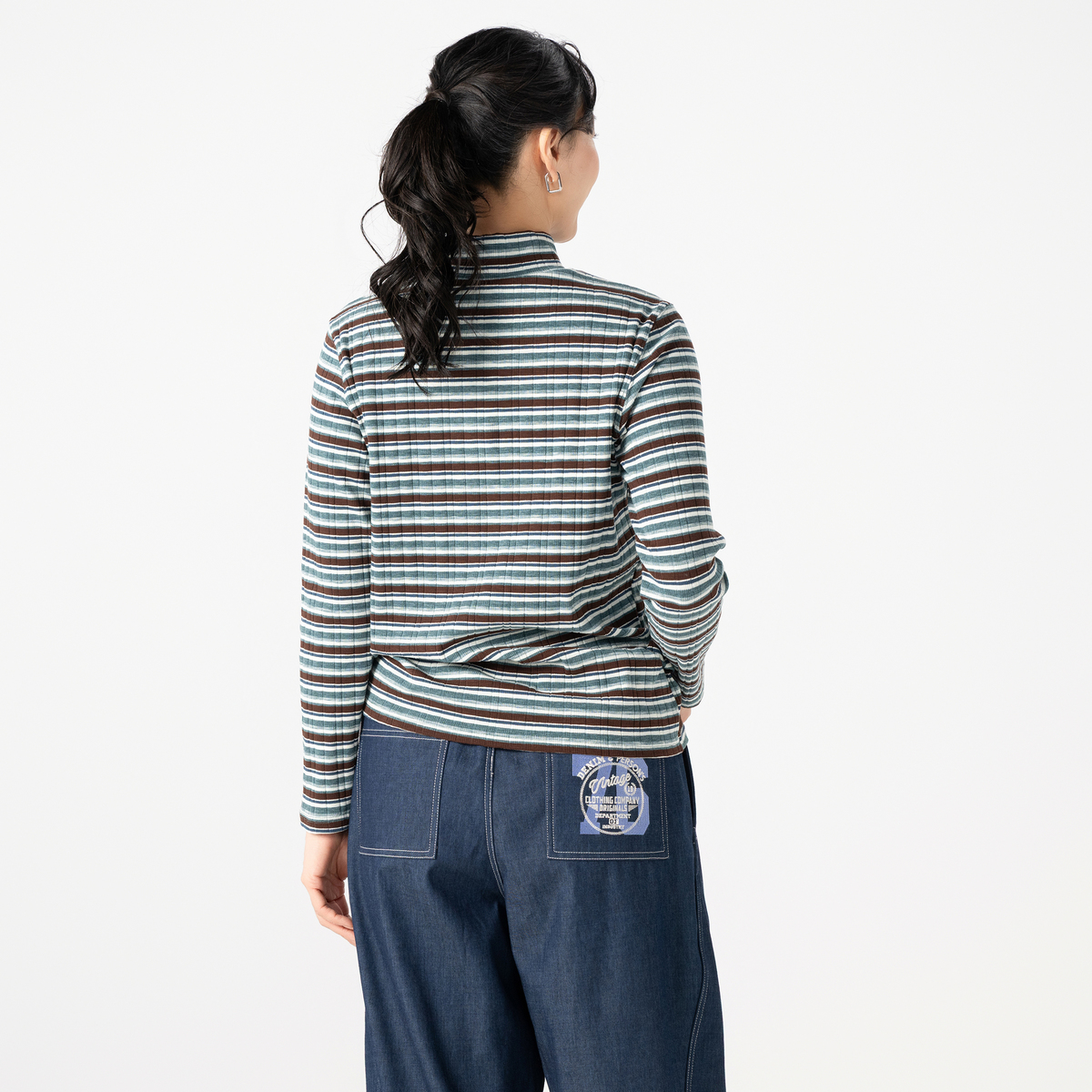 リブ編みカットソー素材を使った、多色ボーダー柄のハイネックトップス。落ち着いた色調のボーダーが、コーデにさりげないアクセントをプラスします。コンパクトなサイズ感で、ジャケットやカーディガンとの組合せにもぴったりな一枚です