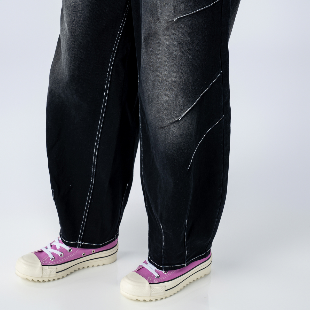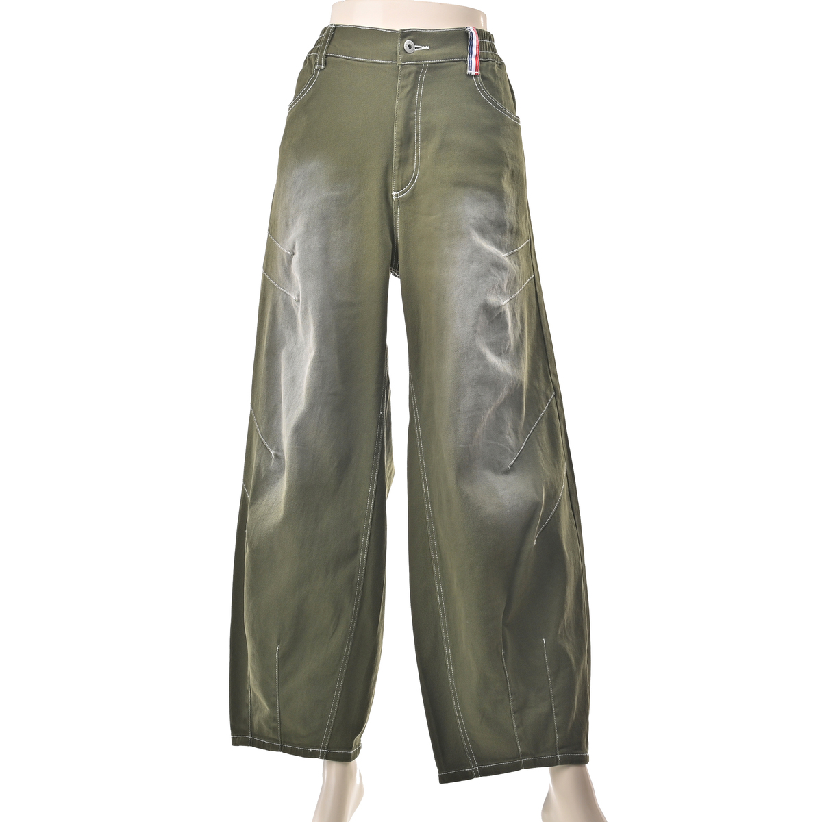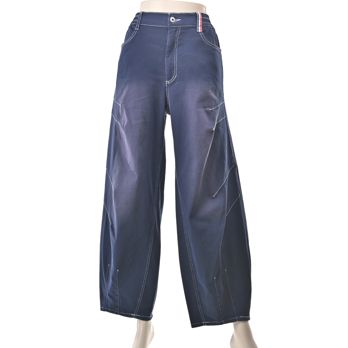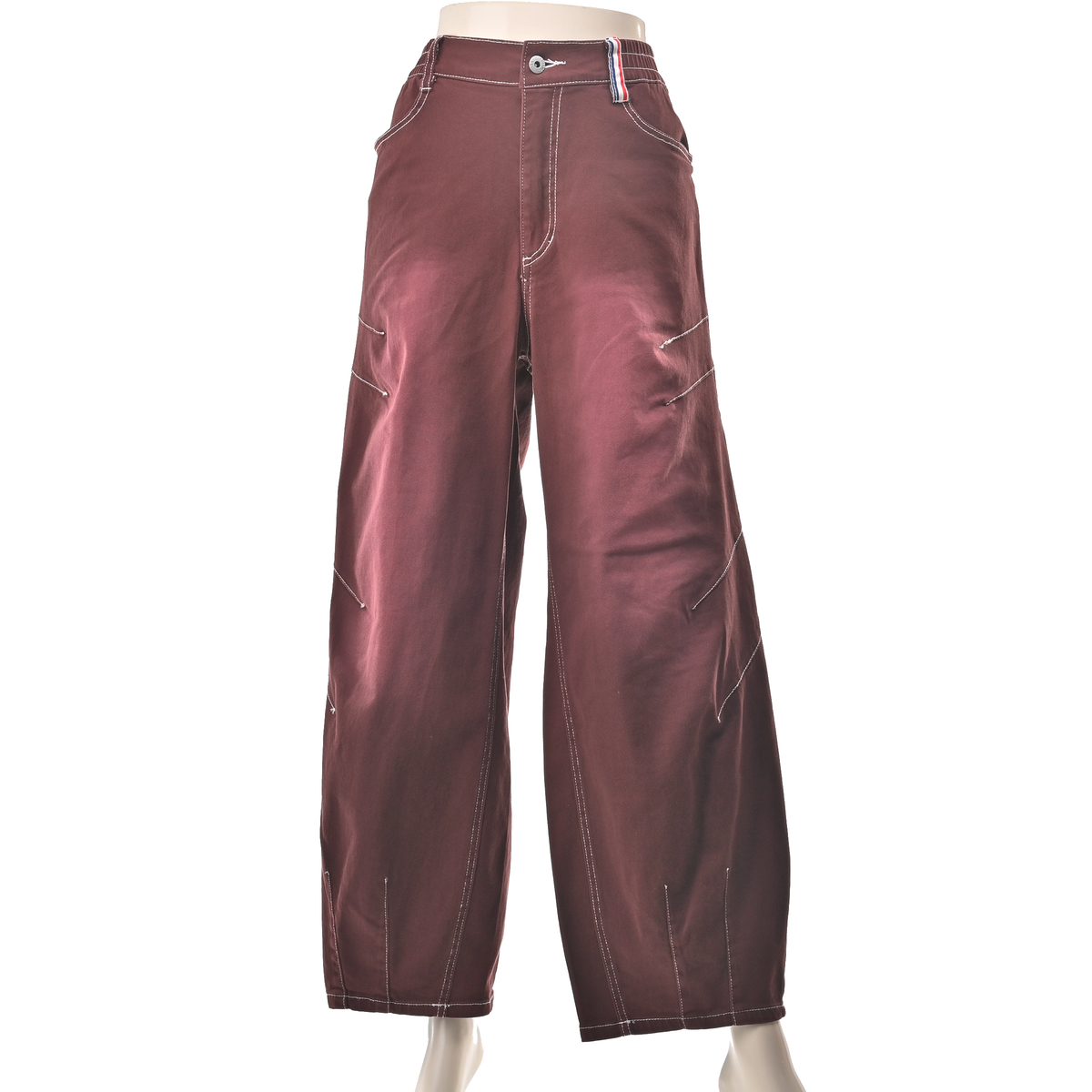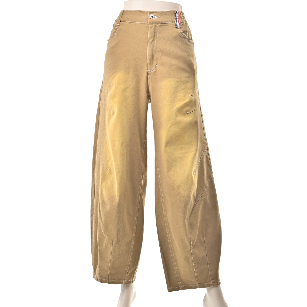 ダーツで裾に丸みを持たせ、ゆったりとしたサイズ感が体型を気にせず穿けるラウンジパンツ。トレンド感あるボリューミーなシルエットで、フロントはすっきり見える前開き仕様です