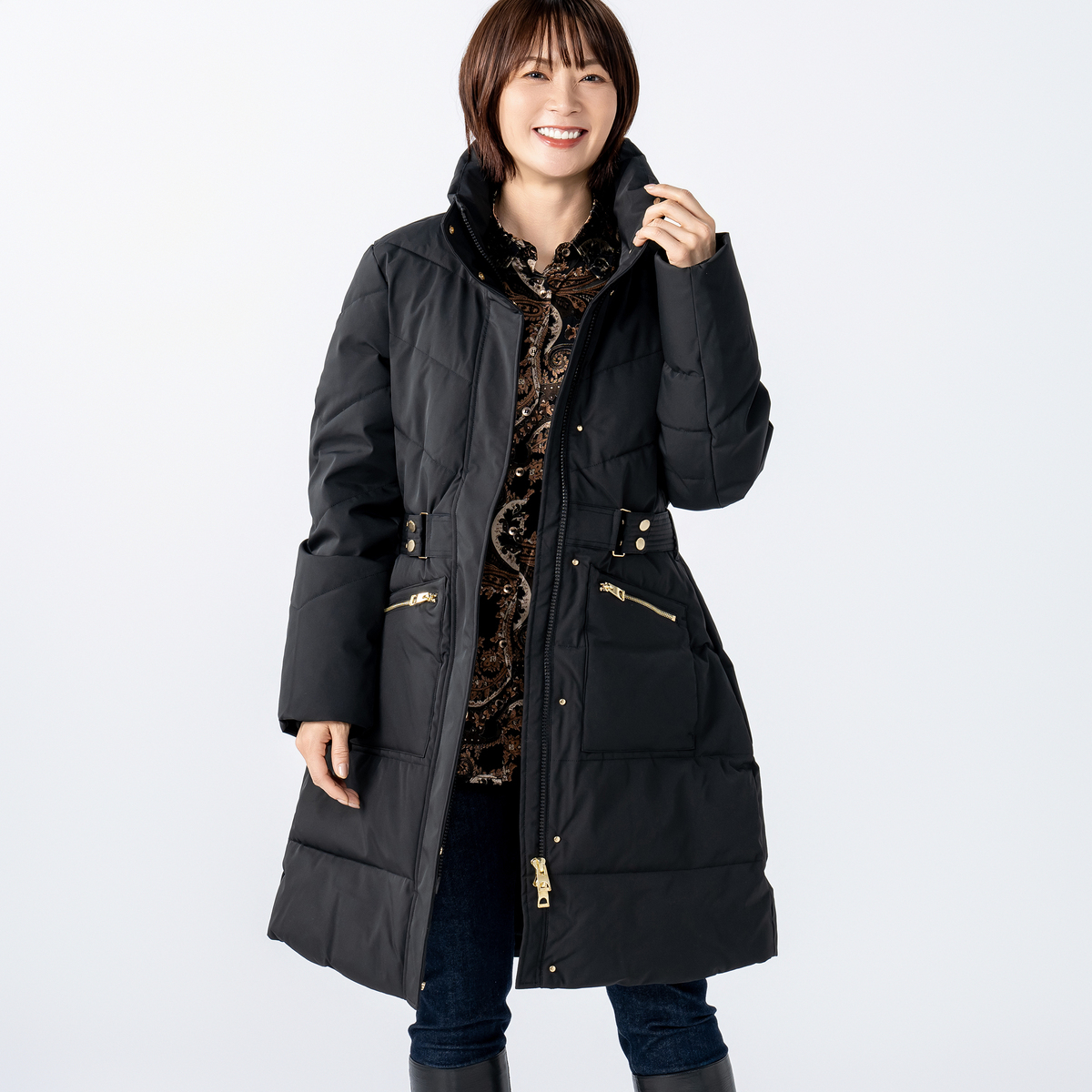 首元を包み込むハイネックスタンドと長めの丈感で暖かな着心地。隠しジッパー止めがスタイリッシュさを演出し、カジュアルなシーンから通勤まで幅広く活躍します