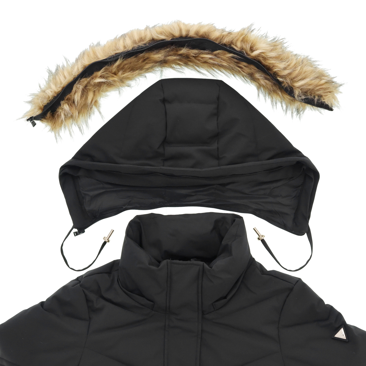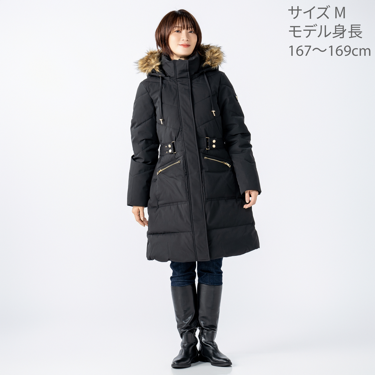 [商品寸法cm] サイズ バスト 着丈 肩幅 袖丈 XS: 101 91.5 41 61 S: 106 93 42.5 62 M: 111 94.5 44 62.5 L: 117 96 46 63 XL: 123 97.5 47.5 63.5 [素材] 表地:ポリエステル100% 中わた:ポリエステル100% リブ部分:ポリエステル99% ポリウレタン1% ファー部分:アクリル62% ポリエステル32% モダクリル6% 裏地:ナイロン100% [お手入れ] 手洗い可 [付属品] パーカー フェイクファー衿 ベルト [注意事項] ※商品寸法の誤差は多少発生します。ご了承下さい ※洗濯前に取外しができる付属品を外す 【中国製】