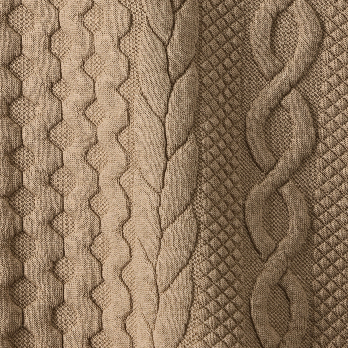 ドロップショルダーとゆとりのあるオーバーサイズで、体のラインを拾いすぎないリラックス感も魅力。軽くふんわりとしたカットソー素材で気軽に羽織れます。両脇には便利なシームポケットを、ケーブル柄を損なわないよう目立たない位置に配置しました