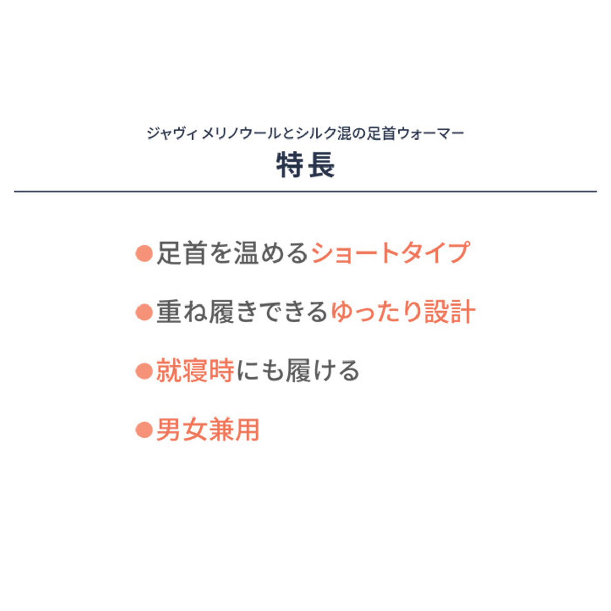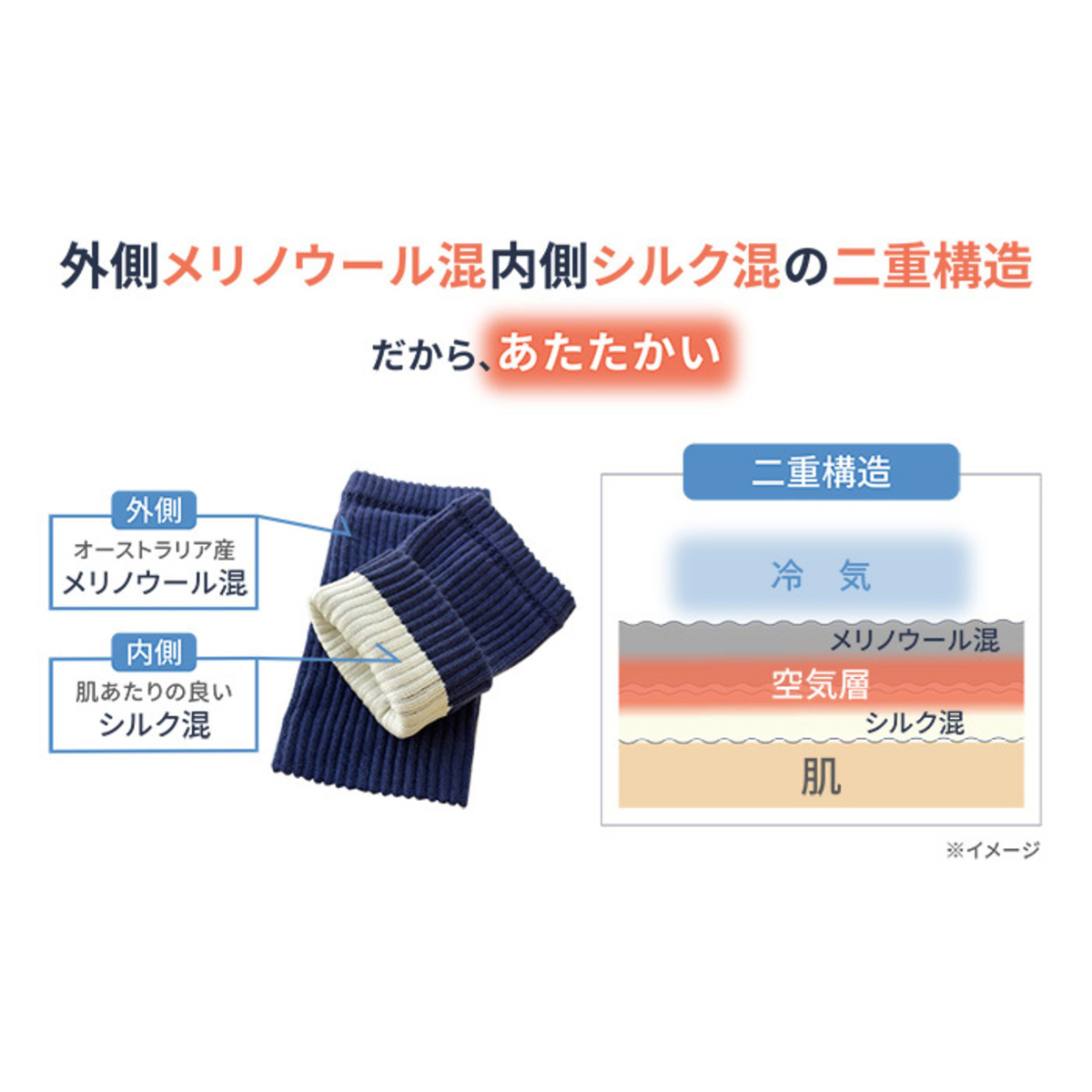 オーストラリア産メリノウールを使った足首ウォーマー。外側はメリノウール混、内側はシルク混の二重構造で、肌に触れる部分はなめらかでやわらかな質感です