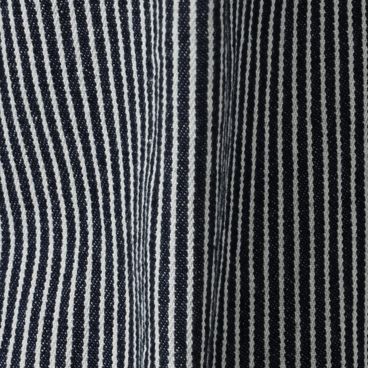 綿100%のヒッコリーデニムを使用。製品で洗い加工を施し、ヴィンテージ感のある色合いに仕上げました