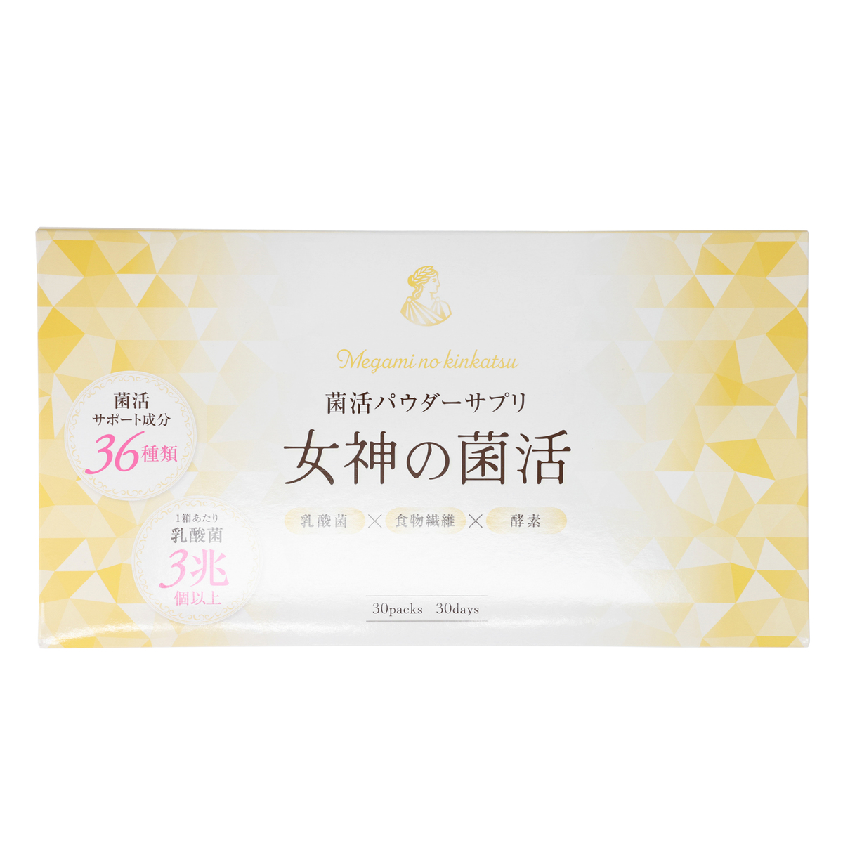 3種の食物繊維(難消化性デキストリン・オート麦食物繊維・イヌリン)と3種の発酵原材料(穀物発酵抽出物・酒粕発酵抽出物・はちみつ発酵物)、乳酸菌・ビフィズス菌(有胞子性乳酸菌、殺菌乳酸菌末、殺菌乳酸菌混合末)を配合し、手軽に菌活を取り入れられるパウダーサプリメントです