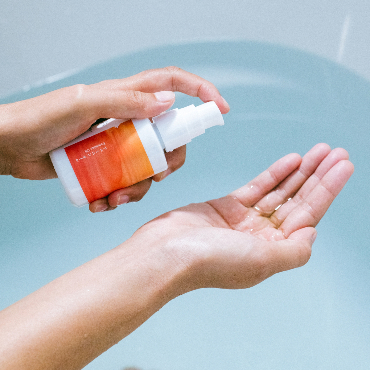 デリケートゾーンを保湿できるフェミニンオイル。肌にうるおいを与え、乾燥を防ぎながらやわらかく整えます。ベタつきにくく、快適な使い心地です
