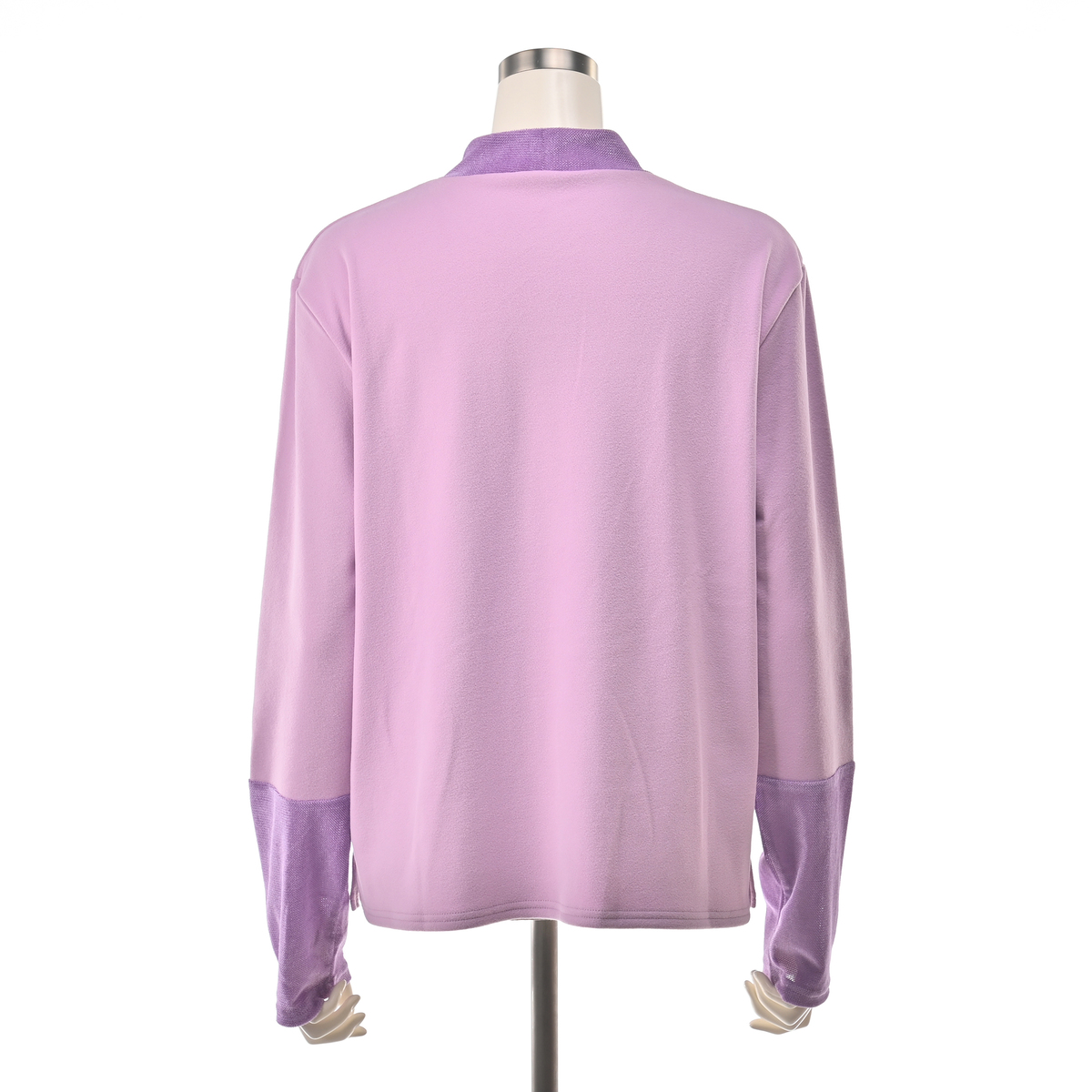 [商品寸法(ヌード)cm] サイズ バスト 着丈 S : 94(72〜80) 58 M : 100(79〜87) 58 L : 106(86〜94) 58 LL : 112(93〜101) 60 3L : 118(100〜108) 60 サイズ 肩幅 袖丈 S : 40 58.5 M : 42 59 L : 44 59.5 LL : 46 60 3L : 48 60.5 [素材] 本体:ポリエステル95% ポリウレタン5% 別布:ポリエステル95% ポリウレタン5% [お手入れ] 洗濯機洗い可 [注意事項] ※商品寸法の誤差は多少発生します。ご了承下さい ※無蛍光洗剤使用 ※洗濯ネット使用 ※あて布使用 ※着用時の摩擦(特に雨や汗により湿った状態での摩擦)で他の衣料やバッグ、椅子やソファー、車のシート等に色が移る場合がありますのでご注意下さい。万が一移染した場合は、移染した衣類等の早めのお手入れをお願いします。 ※濃色は水洗いで色落ちや色移りの恐れがありますので淡色との洗濯は避け、洗濯後は速やかに干して下さい。長時間のつけ置き洗いや濡れたままの重ね置きはお避け下さい ※素材の特性上、長時間の摩擦や揉み作用等で毛玉や毛羽立ちが起きやすいのでご注意下さい。目立つ毛玉はハサミや毛玉取り器で取り除くなどし、飛び出した毛玉や毛羽を引っ張ったりしないで下さい ※直射日光や蛍光灯の影響で変色することがありますのでご了承下さい。洗濯後は必ず陰干しして下さい ※素材の特性上、多少の毛羽抜けが発生します。他の衣類に毛羽が付着した場合には、エチケットブラシなどで取り除いて下さい 【中国製】
