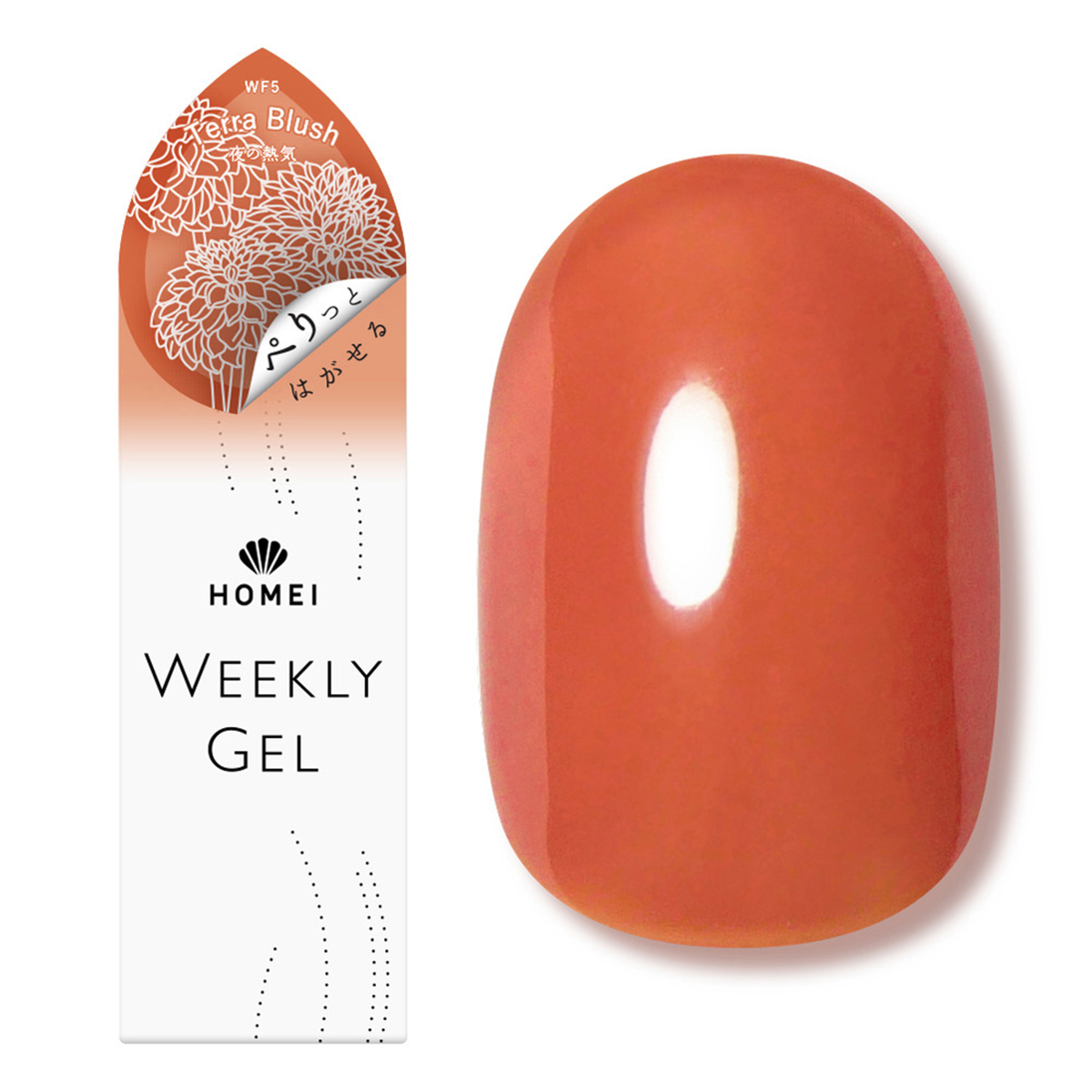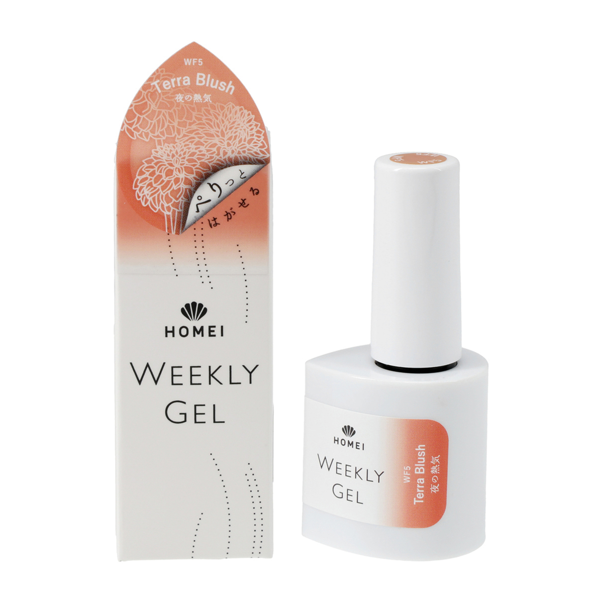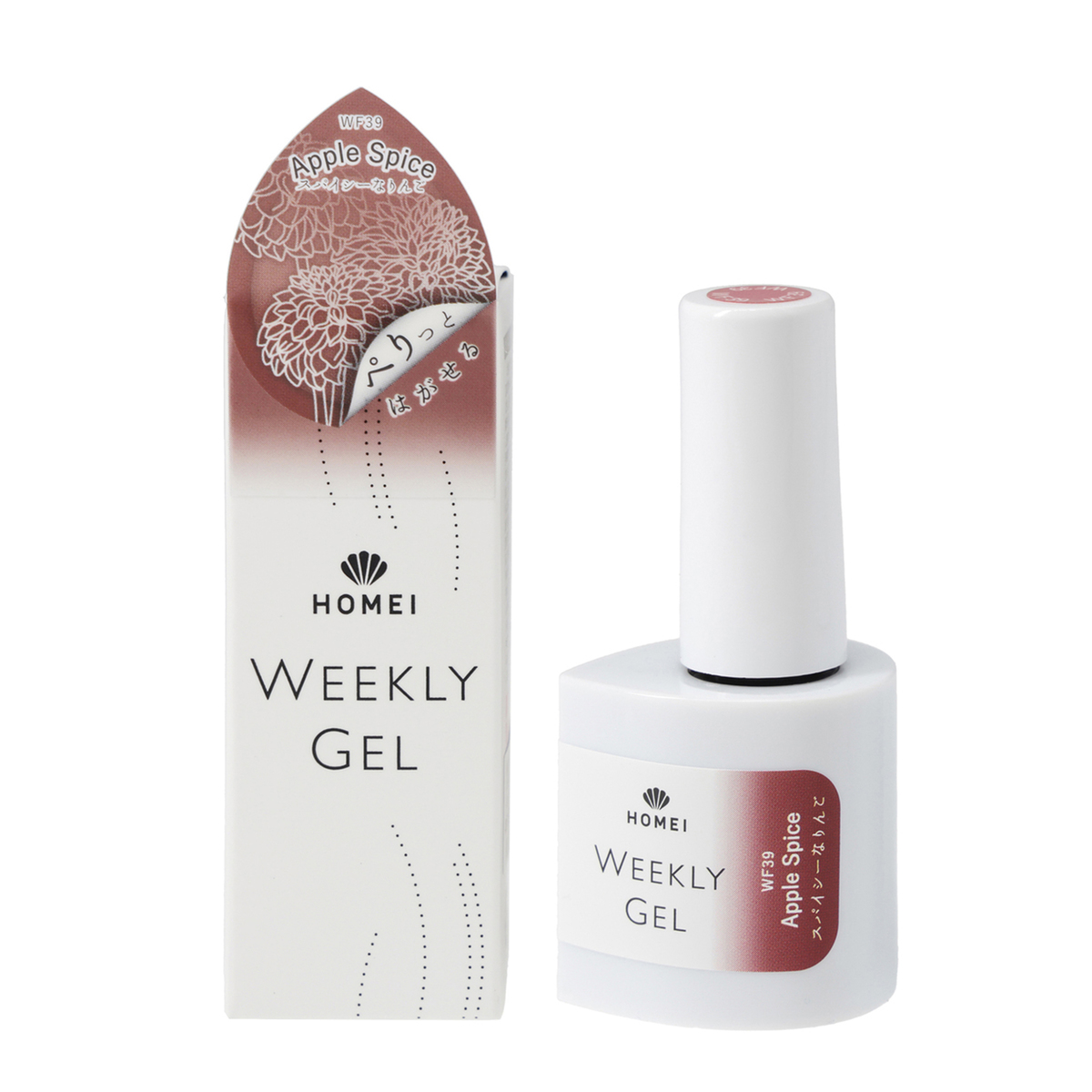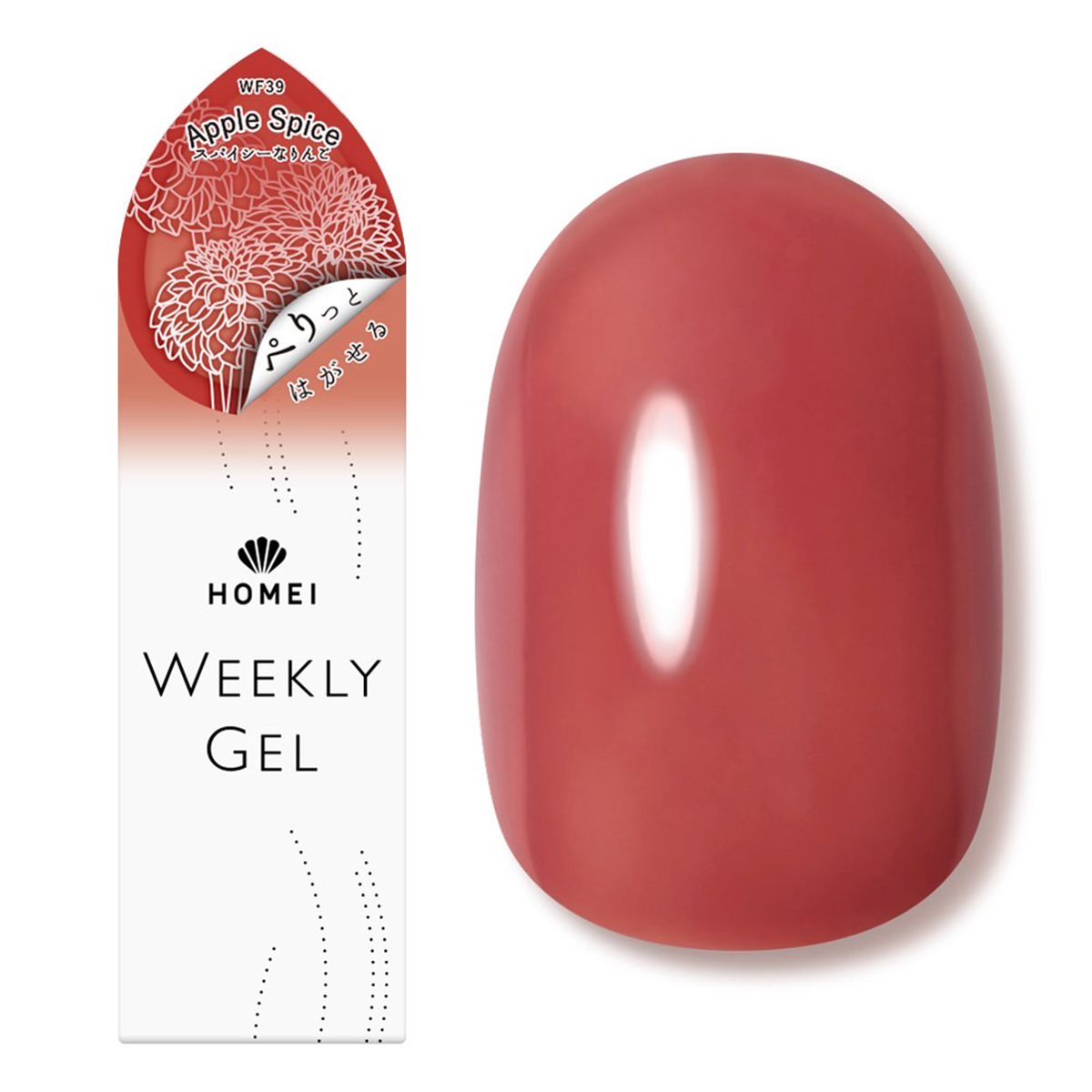 [商品内容] ・HOMEI ウィークリージェルネイル 10ml <販売届出名> HOMEI ウィークリージェルネイル RB (WF5 テラブラッシュ、WF16 プラムサングリア、WF19 ホワイティッシュペタル、WF62 スターライトベージュ、WF65 フィグペースト、WF15 オータムブレス) HOMEI ウィークリージェルネイル RC (WF40 ダストコスモス、WF39 アップルスパイス) 【台湾製】 [注意事項] ※LEDライト・UVライト対応 ※全ての機器に対応しているとは限りません ※本製品はネイルポリッシュとは異なり、光を利用し硬化させるジェルネイルです ※製品の特性上、光が当たり一度反応(光重合)が始まると、連鎖反応で重合が進行し、粘度が上がり硬化します。お取り扱いにはご注意ください ※使用中、LED・UVライトに当たらないよう又近くに置かないようにご注意ください ※既にジェルネイル(他社様商品やサロン施術)を塗っている上から塗らないでください。すでに塗っているジェルネイル等の相性によりジェルが完全に硬化しなかったり、逆に密着しすぎ、はがす時に下に塗っているジェルの表面も、はがしてしまう可能性がございます 【ジェルネイル】 ※LED・UVライトに当たらないようまた近くに置かないようにご注意ください ※爪に異常がある場合は、ご使用をおやめください ※使用中または使用後、爪に異常があらわれた場合は直ちに使用を中止し、皮膚科専門医等にご相談ください ※手や皮膚に付いた場合は、すぐに石鹸と水で洗い流してください ※乳幼児の手の届かないところに保管してください ※用途以外にはお使いにならないでください ※直射日光の当たる場所、極端に高温または低温の場所では保管しないでください ※暗所に立てた状態で保管してください ※使用中長時間キャップを開けたままにせず、使用後はしっかりキャップを閉めてください(蛍光灯の光などで中身が固まる恐れがあります) ※使用後はキャップに付いた中身を拭き取ってください ※開封後は半年以内に使い切っていただく事をおすすめします ※火気にご注意ください ※爪が傷んでいたらお休みしてください ※ネイルオフ後は爪を保湿してください ※直射日光の当たる場所、極端に高温または低温の場所では保管しないでください ※暗所に立てた状態で保管してください [成分] 【WF5 テラブラッシュ】【WF16 プラムサングリア】【WF15 オータムブレス】【WF19 ホワイティッシュペタル】 【WF62 スターライトベージュ】【WF65 フィグペースト】 ジメタクリル酸グリコール、トリアクリル酸トリメチロールプロパン、(アクリル酸/アクリル酸イソブチル/アクリル酸イソボルニル)コポリマー、ジメタクリル酸ジエチレングリコール、(メタクリル酸ラウリル/ジメタクリル酸グリコール)クロスポリマー、ヒドロキシシクロヘキシルフェニルケトン、シリカ、マスチック樹脂、酢酸トコフェロール、アロエベラ葉エキス、イノンド種子エキス、+/-マイカ、酸化チタン、酸化鉄、赤226、赤227、赤228、青404、黄203、紫401 【WF39 アップルスパイス】【WF40 ダストコスモス】 ジメタクリル酸グリコール、トリアクリル酸トリメチロールプロパン、(アクリル酸/アクリル酸イソブチル/アクリル酸イソボルニル)コポリマー、ジメタクリル酸ジエチレングリコール、(メタクリル酸ラウリル/ジメタクリル酸グリコール)クロスポリマー、ヒドロキシシクロヘキシルフェニルケトン、シリカ、マスチック樹脂、酢酸トコフェロール、アロエベラ葉エキス、イノンド種子エキス、+/-マイカ、酸化チタン、酸化鉄、赤226、赤227、赤228、青404、黄203、紫401、PET