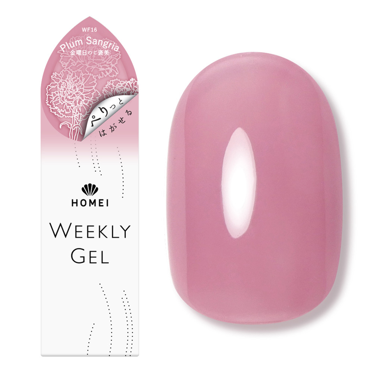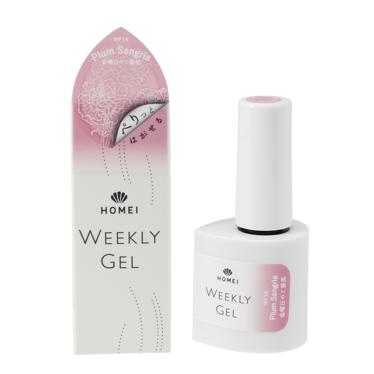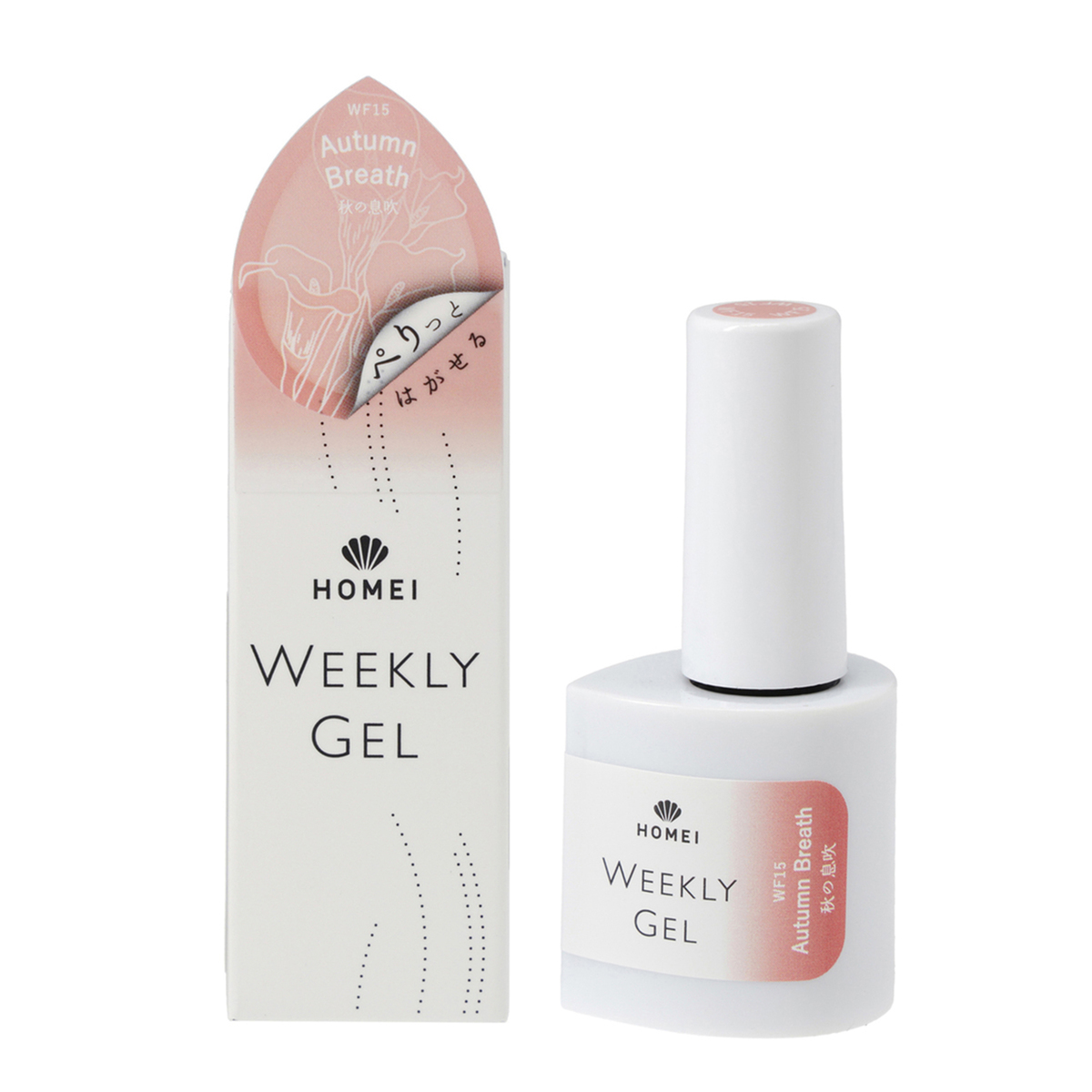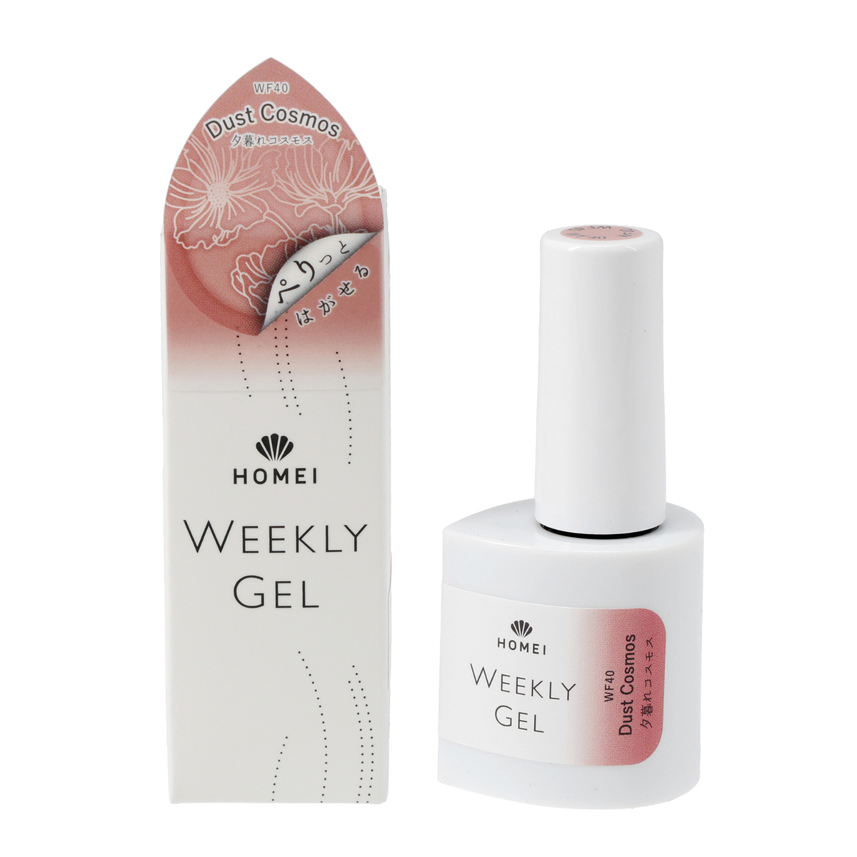[商品内容] ・HOMEI ウィークリージェルネイル 10ml <販売届出名> HOMEI ウィークリージェルネイル RB (WF5 テラブラッシュ、WF16 プラムサングリア、WF19 ホワイティッシュペタル、WF62 スターライトベージュ、WF65 フィグペースト、WF15 オータムブレス) HOMEI ウィークリージェルネイル RC (WF40 ダストコスモス、WF39 アップルスパイス) 【台湾製】 [注意事項] ※LEDライト・UVライト対応 ※全ての機器に対応しているとは限りません ※本製品はネイルポリッシュとは異なり、光を利用し硬化させるジェルネイルです ※製品の特性上、光が当たり一度反応(光重合)が始まると、連鎖反応で重合が進行し、粘度が上がり硬化します。お取り扱いにはご注意ください ※使用中、LED・UVライトに当たらないよう又近くに置かないようにご注意ください ※既にジェルネイル(他社様商品やサロン施術)を塗っている上から塗らないでください。すでに塗っているジェルネイル等の相性によりジェルが完全に硬化しなかったり、逆に密着しすぎ、はがす時に下に塗っているジェルの表面も、はがしてしまう可能性がございます 【ジェルネイル】 ※LED・UVライトに当たらないようまた近くに置かないようにご注意ください ※爪に異常がある場合は、ご使用をおやめください ※使用中または使用後、爪に異常があらわれた場合は直ちに使用を中止し、皮膚科専門医等にご相談ください ※手や皮膚に付いた場合は、すぐに石鹸と水で洗い流してください ※乳幼児の手の届かないところに保管してください ※用途以外にはお使いにならないでください ※直射日光の当たる場所、極端に高温または低温の場所では保管しないでください ※暗所に立てた状態で保管してください ※使用中長時間キャップを開けたままにせず、使用後はしっかりキャップを閉めてください(蛍光灯の光などで中身が固まる恐れがあります) ※使用後はキャップに付いた中身を拭き取ってください ※開封後は半年以内に使い切っていただく事をおすすめします ※火気にご注意ください ※爪が傷んでいたらお休みしてください ※ネイルオフ後は爪を保湿してください ※直射日光の当たる場所、極端に高温または低温の場所では保管しないでください ※暗所に立てた状態で保管してください [成分] 【WF5 テラブラッシュ】【WF16 プラムサングリア】【WF15 オータムブレス】【WF19 ホワイティッシュペタル】 【WF62 スターライトベージュ】【WF65 フィグペースト】 ジメタクリル酸グリコール、トリアクリル酸トリメチロールプロパン、(アクリル酸/アクリル酸イソブチル/アクリル酸イソボルニル)コポリマー、ジメタクリル酸ジエチレングリコール、(メタクリル酸ラウリル/ジメタクリル酸グリコール)クロスポリマー、ヒドロキシシクロヘキシルフェニルケトン、シリカ、マスチック樹脂、酢酸トコフェロール、アロエベラ葉エキス、イノンド種子エキス、+/-マイカ、酸化チタン、酸化鉄、赤226、赤227、赤228、青404、黄203、紫401 【WF39 アップルスパイス】【WF40 ダストコスモス】 ジメタクリル酸グリコール、トリアクリル酸トリメチロールプロパン、(アクリル酸/アクリル酸イソブチル/アクリル酸イソボルニル)コポリマー、ジメタクリル酸ジエチレングリコール、(メタクリル酸ラウリル/ジメタクリル酸グリコール)クロスポリマー、ヒドロキシシクロヘキシルフェニルケトン、シリカ、マスチック樹脂、酢酸トコフェロール、アロエベラ葉エキス、イノンド種子エキス、+/-マイカ、酸化チタン、酸化鉄、赤226、赤227、赤228、青404、黄203、紫401、PET