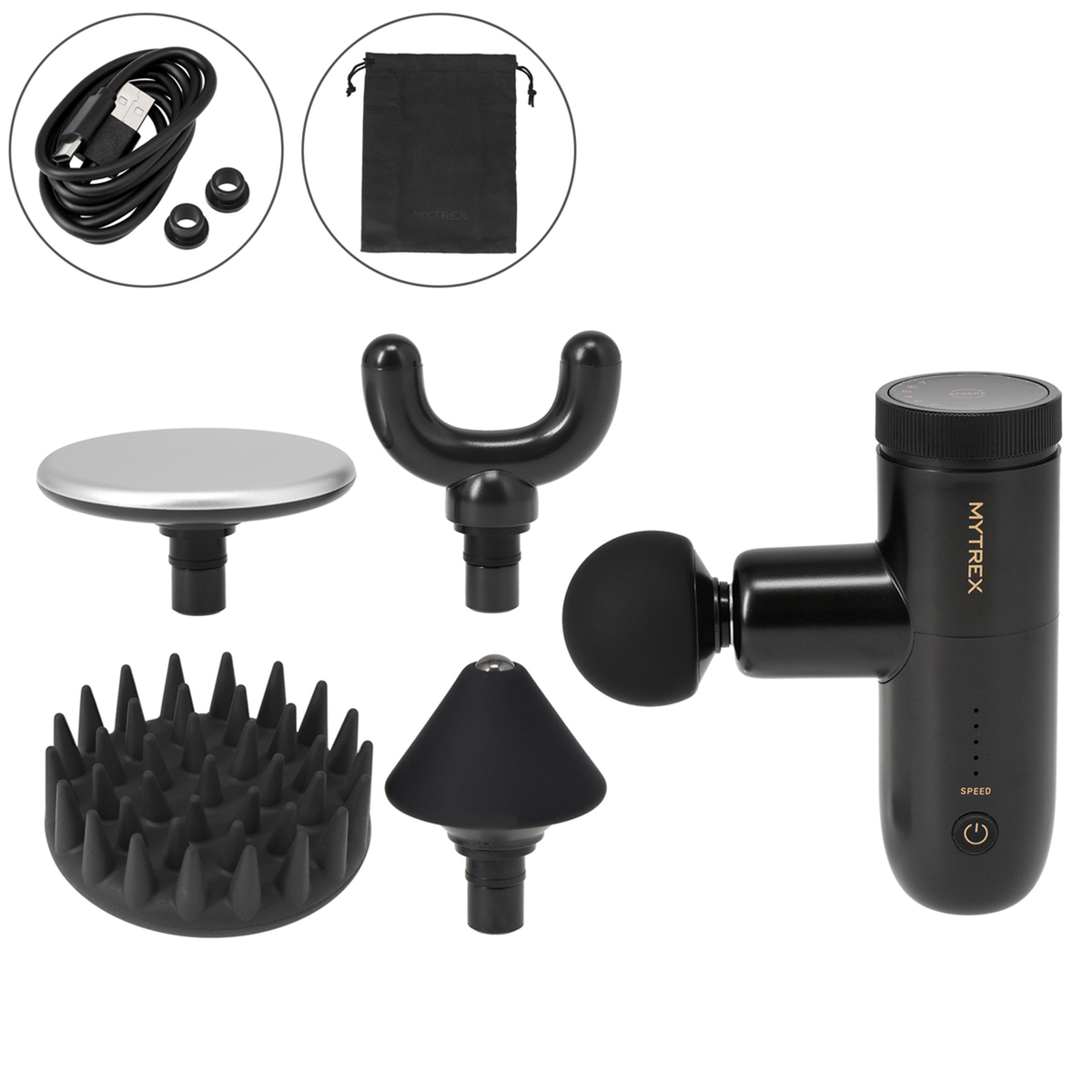 5段階の振動スピードと2mm〜7mmのストローク(振幅)を調整できる振動ガン。部位やお好みに合わせて設定できます