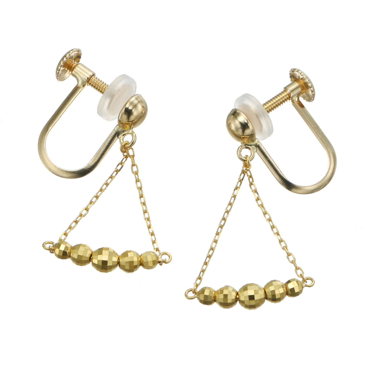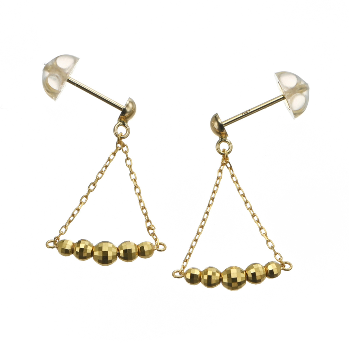 グラデーションに並べた純金のミラーボールのラインが耳元で揺れ動く、スイングタイプのイヤリングまたはピアスです