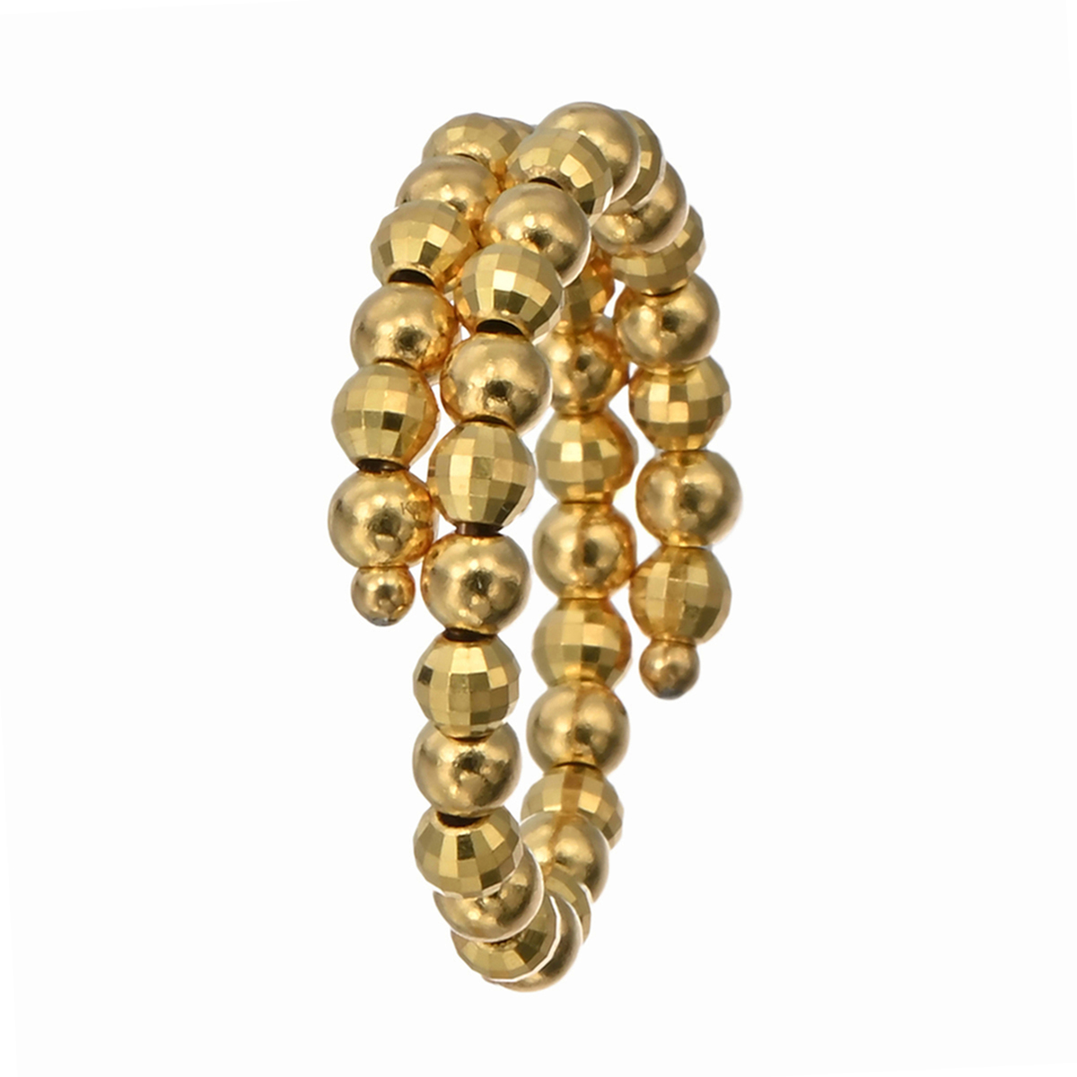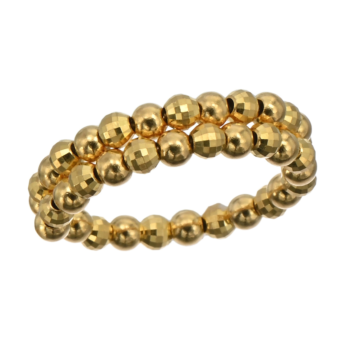 純金のミラーボールとプレーンボール、2種類を交互に連装。純金パーツが織りなす表情豊かな輝きが、指元を華やかに引き立てるリングです