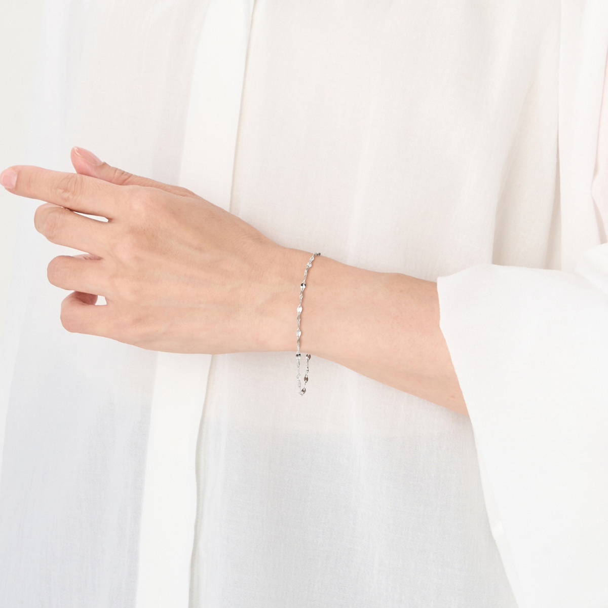純プラチナを使用したペタルチェーンブレスレット。ボリューム感がありながらも軽やかな着け心地で、手元をエレガントに演出してくれます