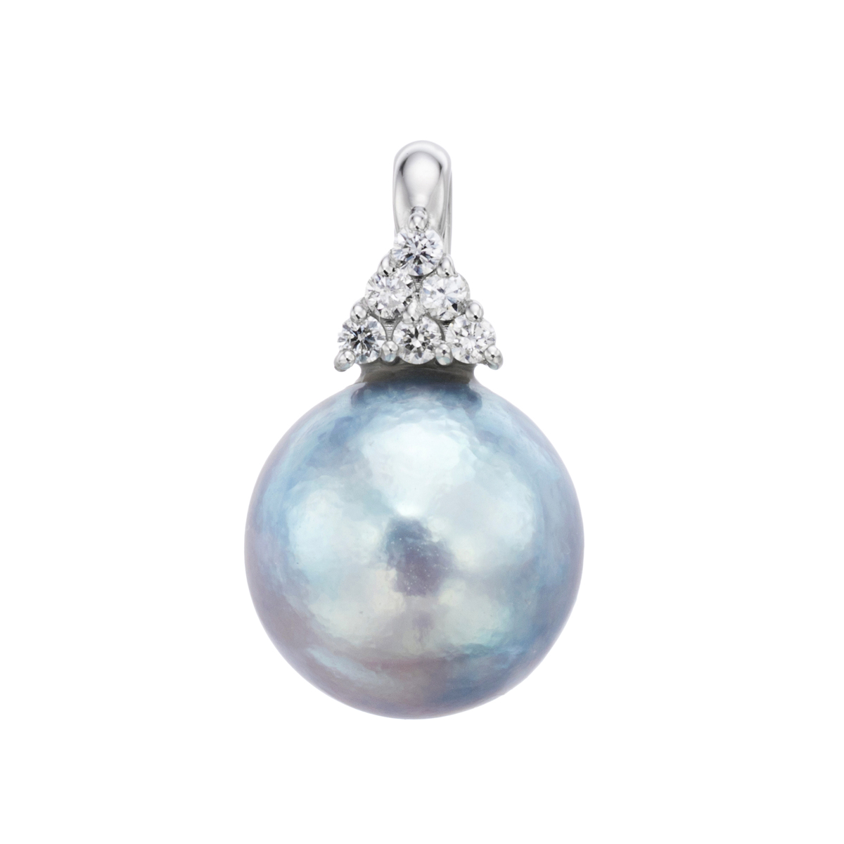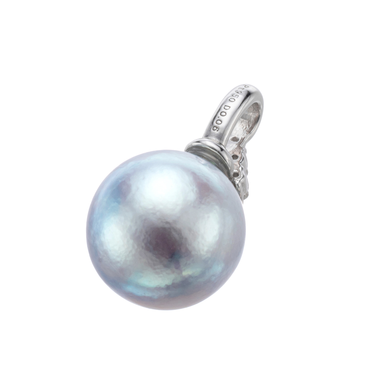 艶やかなブルー系の色合いが素敵な、アコヤ真珠のペンダントヘッドです。愛媛県宇和島産のアコヤ真珠から、美しいブルー系のナチュラルカラー、9.0mmUPの大粒で個性豊かなセミバロックパールを厳選して使用。上品な艶感が際立つジュエリーに仕上げました
