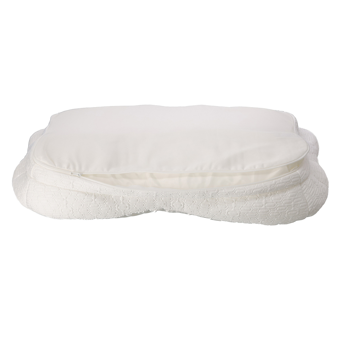 枕裏面のファスナーからウレタンシートを出し入れし、自分に合う高さに調節可能。就寝中首元に負担がかかりにくい寝姿勢をサポートします