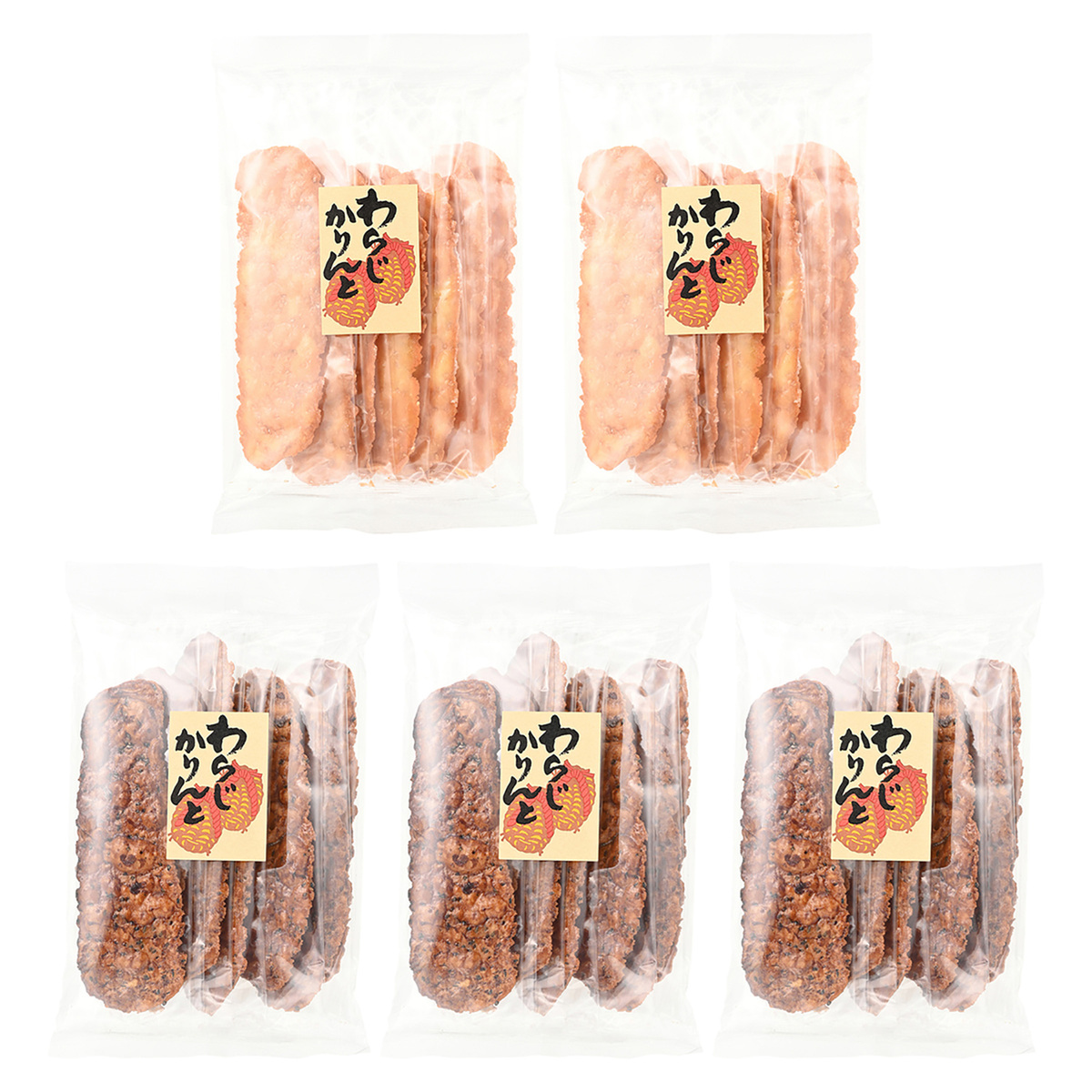 [アレルギー物質特定原材料8品目] 小麦 [内容量] 7枚×5袋(白蜜2袋、黒蜜3袋) [賞味期限] 出荷時点で賞味期限まで40日以上ある商品をお届けします [保存方法] 開封前:直射日光、高温多湿を避けて常温で保存して下さい 開封後:お早めにお召し上がり下さい [注意事項] ※開封後はお早めにお召し上がりください ※商品の特製上、割れやすくなっておりますが品質には問題ございません [原料原産地] 小麦粉(国内製造) [原産国] 日本 [原材料] わらじかりんとう 黒蜜:小麦粉(国内製造)、糖類(加工黒糖(粗糖、黒蜜、糖蜜)、上白糖)、植物油脂、醤油、胡麻、食塩/カラメル色素、(一部に小麦・大豆・ごまを含む) わらじかりんとう 白蜜:小麦粉(国内製造)、砂糖、植物油脂、醤油、胡麻、食塩、(一部に小麦・大豆・ごまを含む)