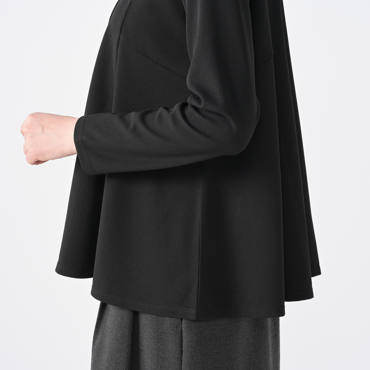 繊細な凹凸のある柔らかなカットソー生地を使用。肌当たりが良く、着心地の良い1枚です
