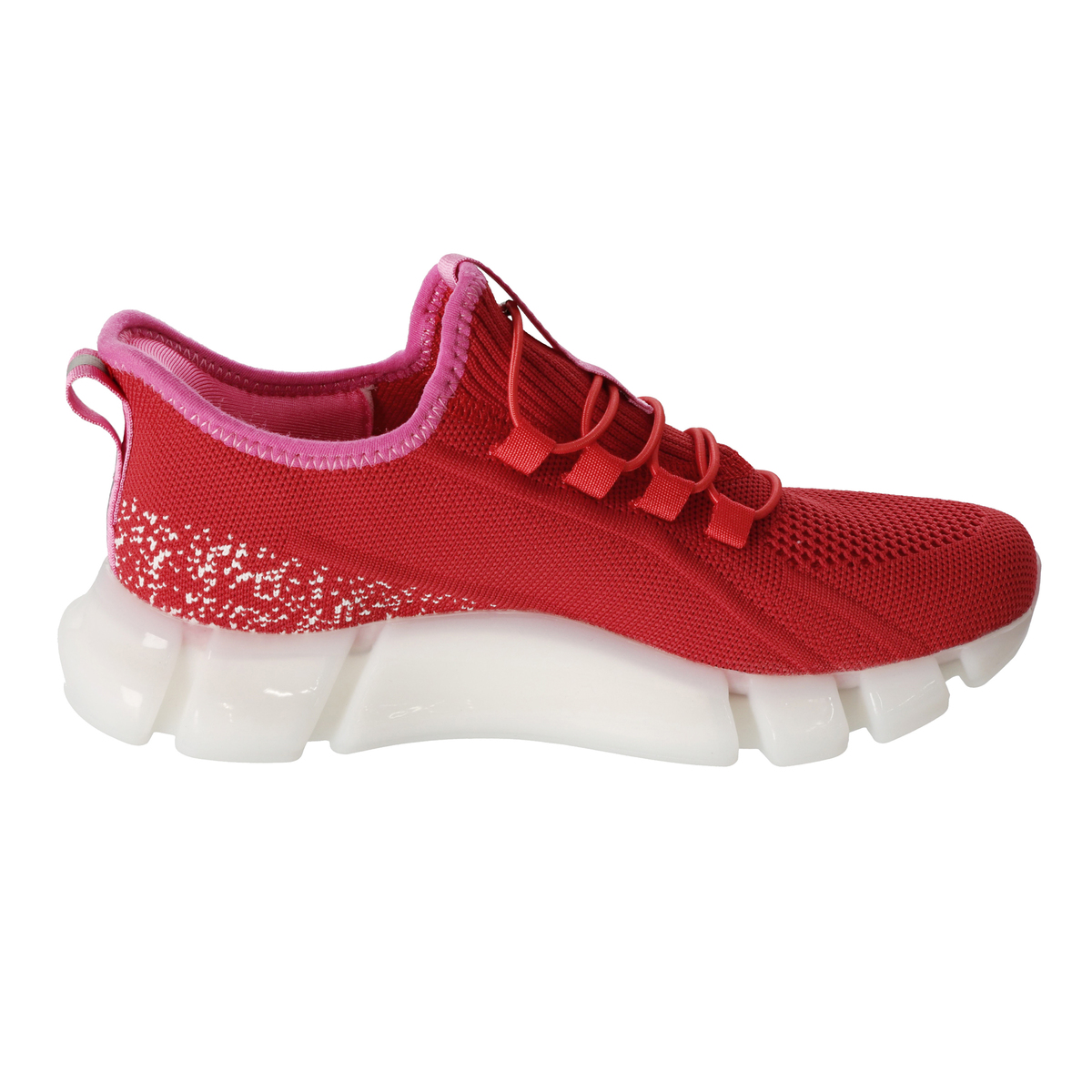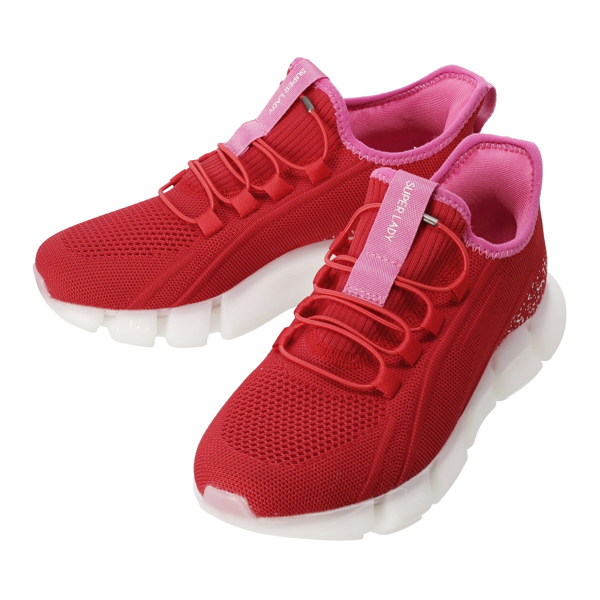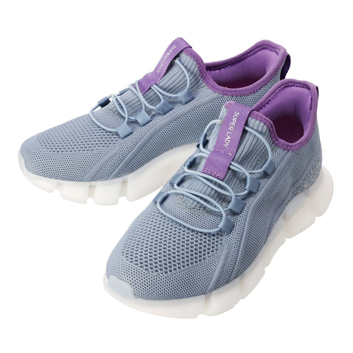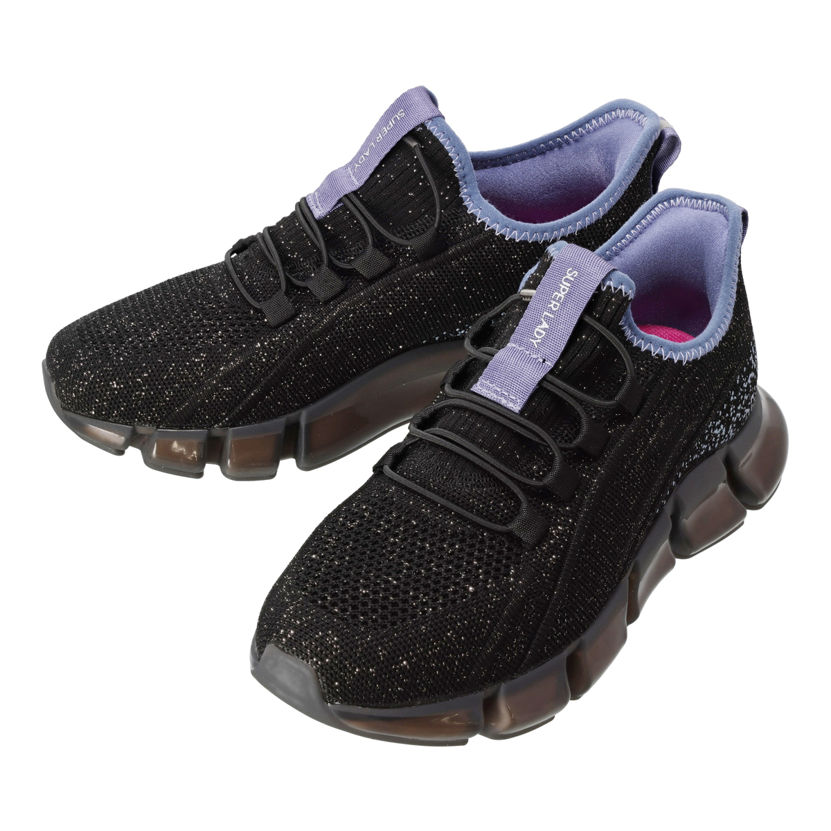 脱ぎ履きしやすいおしゃれなハイウェッジスニーカーです。アッパー素材には歩くたびにキラキラと輝く生地を使用。靴ひもにはゴム紐を使用した、ハンズフリー仕様です。シュータンと踵を一体にしたデザインで、履きやすくしました