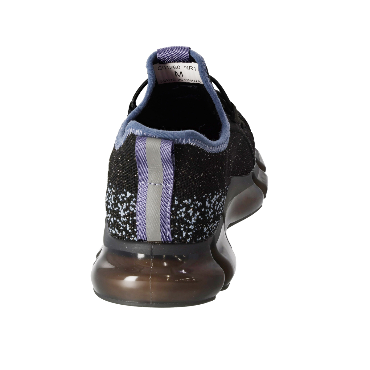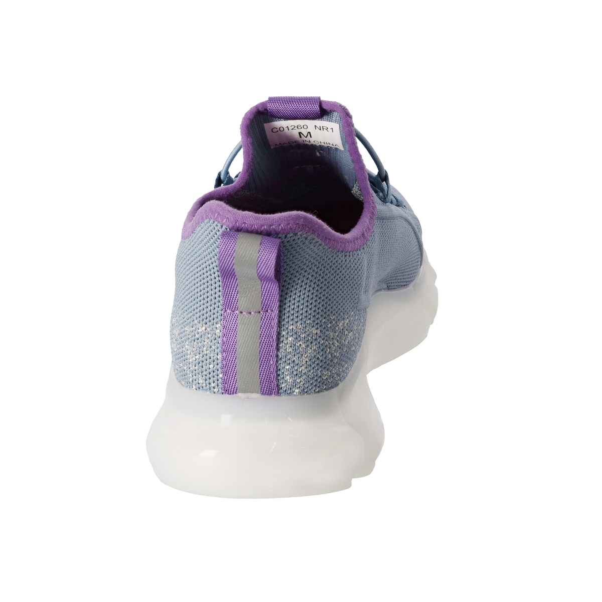 爪先には抗菌防臭テープを貼付けました。かかと部分は、くるぶし部分を低くし、アキレス腱部分を高く設計してすっきり見えるデザイン。光に当たると反射するラインテープを踵に使うことで、夜のお散歩にも役立ちます
