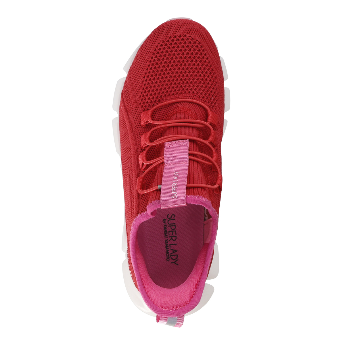 ピンクのインソールで、山本寛斎さんらしい色使いを表現。取り外しができる7mmのクッション性のあるカップインソール仕様です。かかとは厚めのスポンジ入りで靴擦れ防止の工夫を施しています