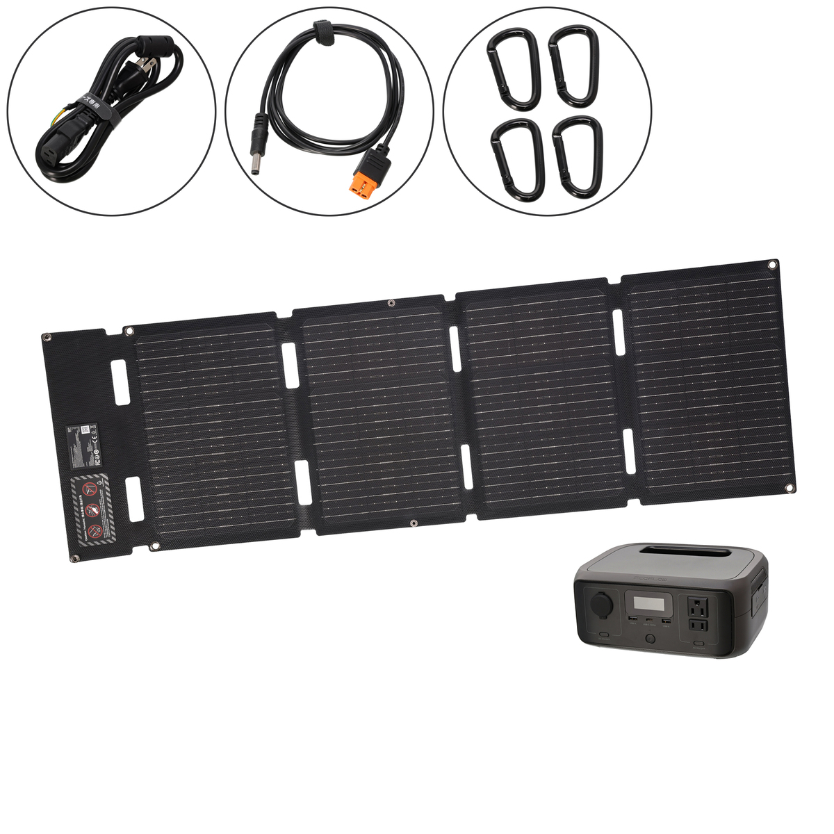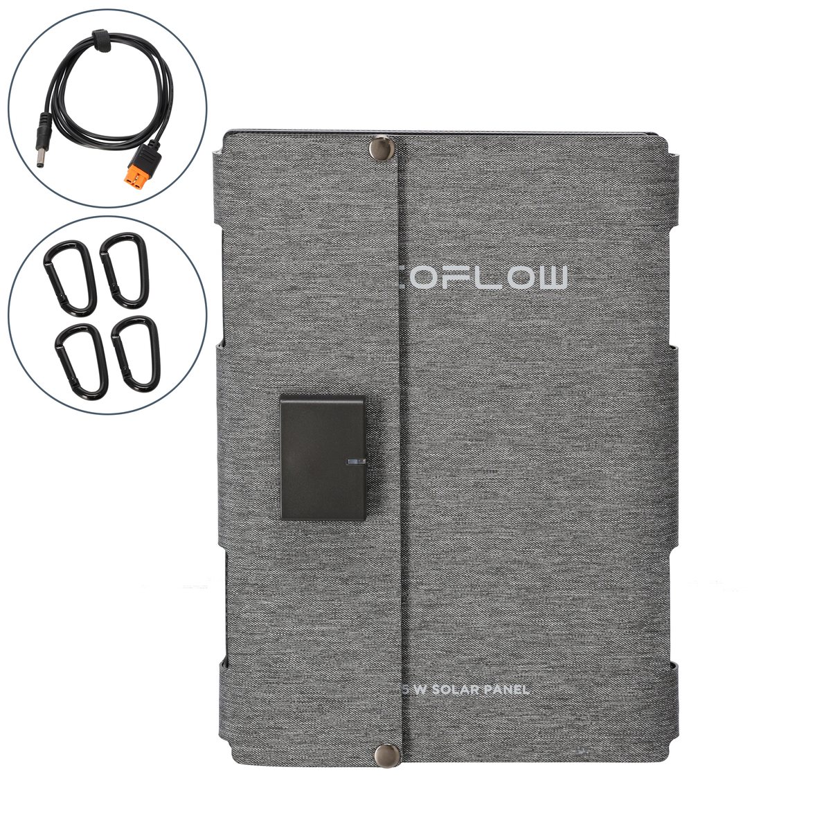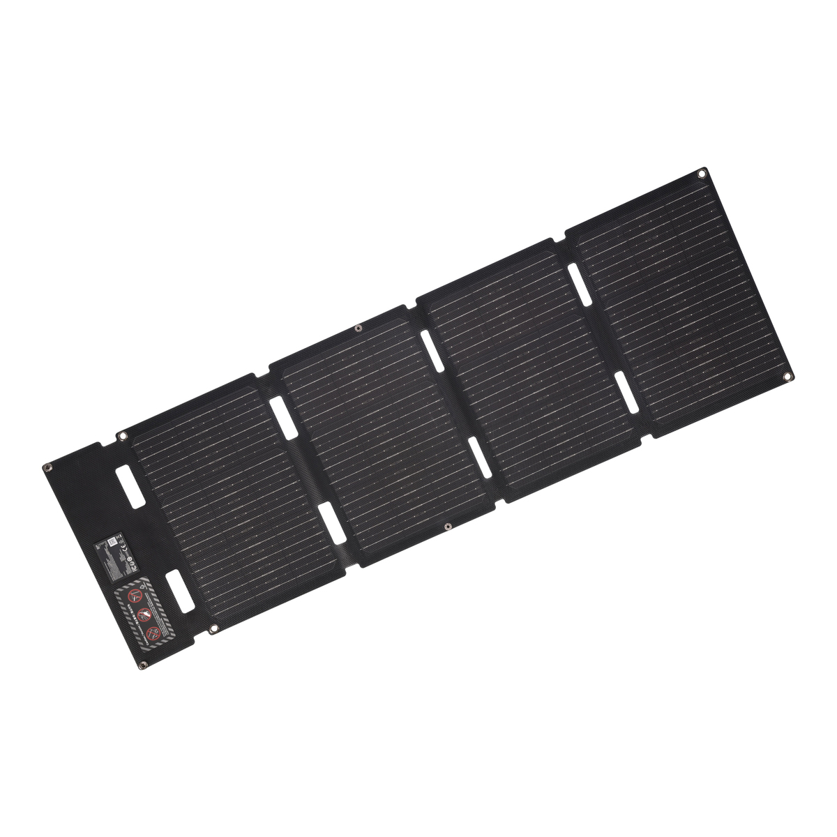 4枚のパネルで構成された折りたたみ式のコンパクト設計。USB-C出力を搭載し、スマホやノートPCなどに直接充電できます
