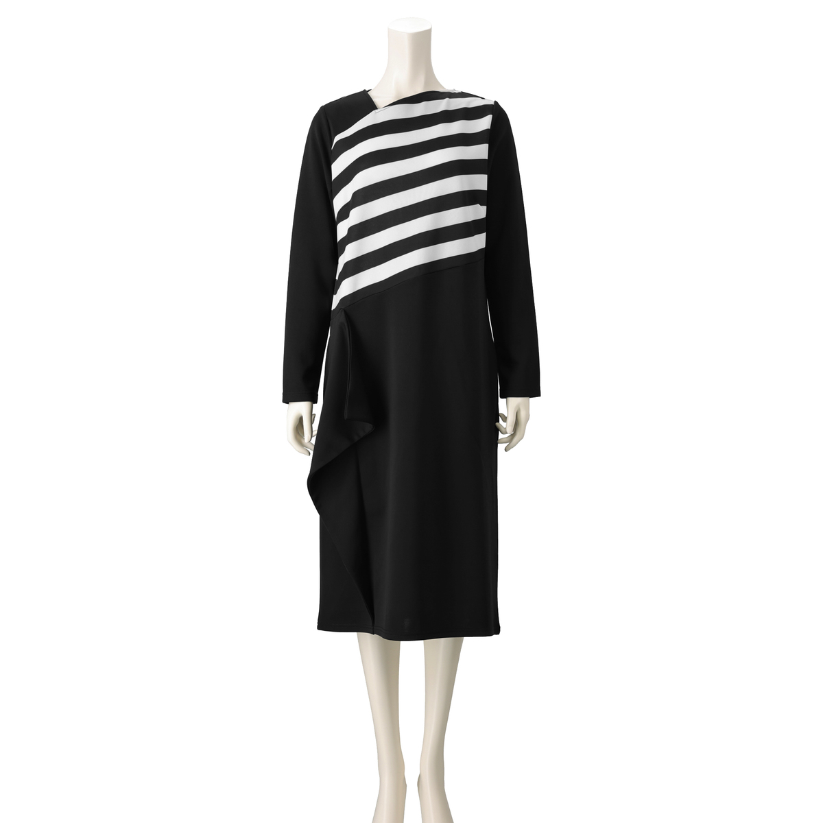 No. 751077 BOUTIQUE JUNKO アシンメトリープリントデザインワンピース