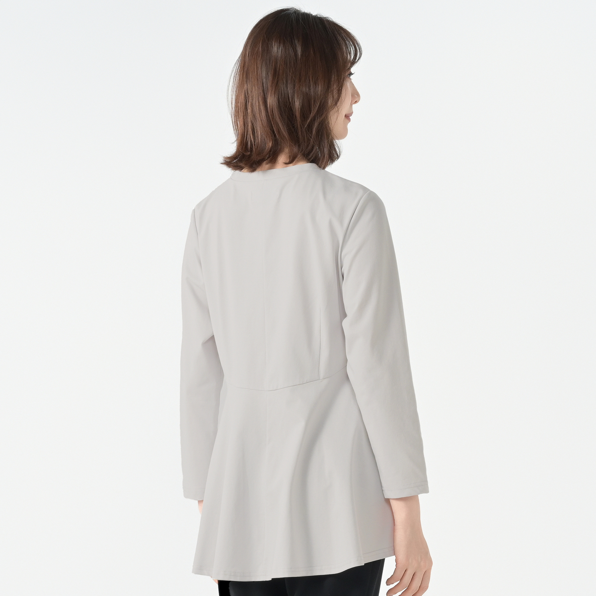 毛羽立ちが少なく上品に映るシルケット素材を使い、落ち着いた印象に仕上げたプルオーバー。ペプラムシルエットを大人らしく整え、甘さを抑えながらフェミニンなニュアンスを添えています。カジュアルからきれいめまで、軽やかな表情をつくる一着です