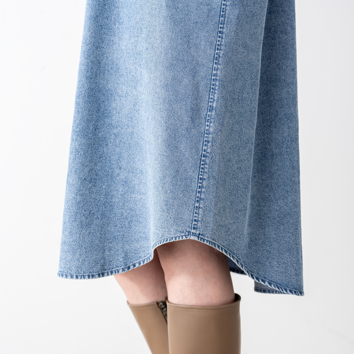 コットン・レーヨンの、しなやかなデニム素材を使用。落ち感があり華奢見え効果が期待できます