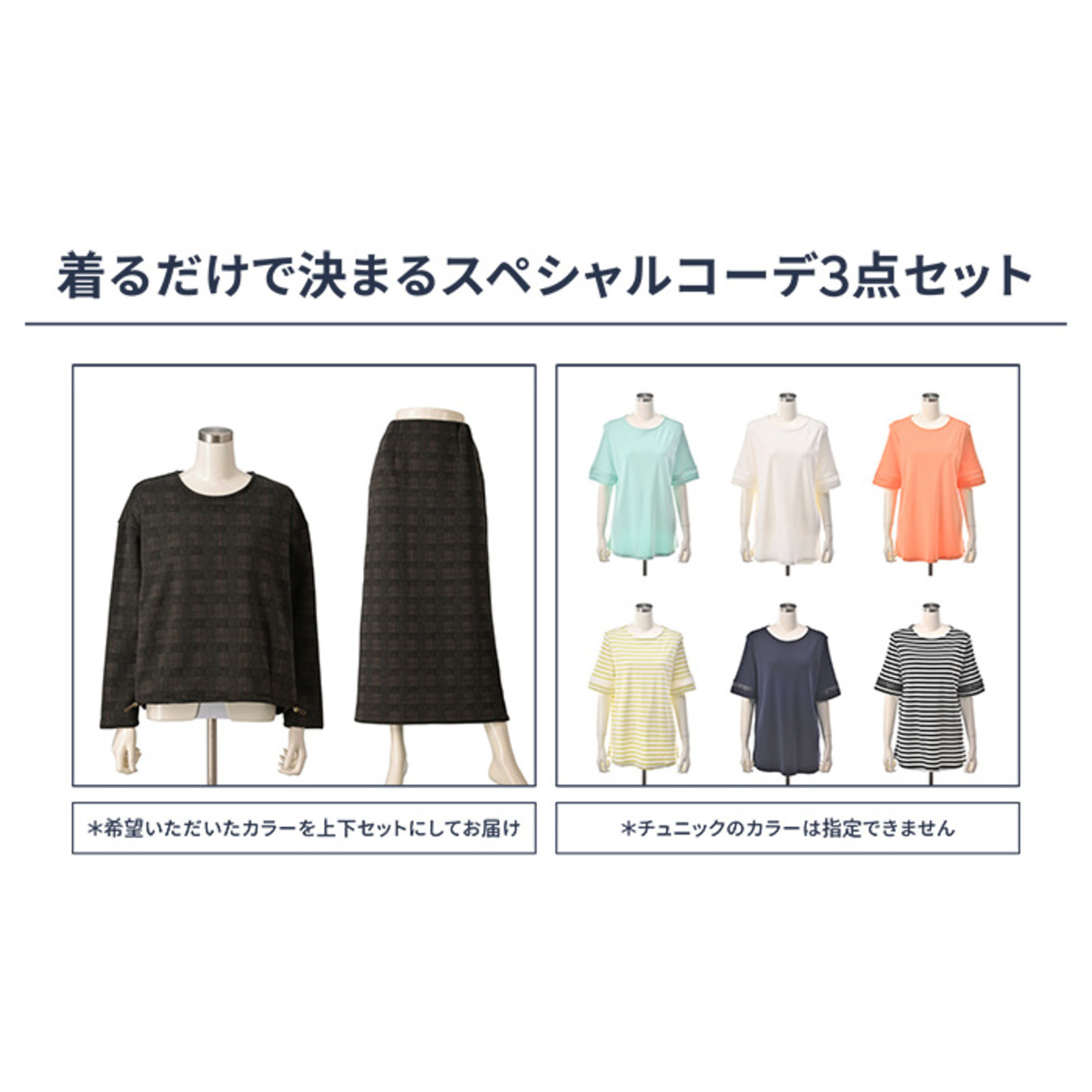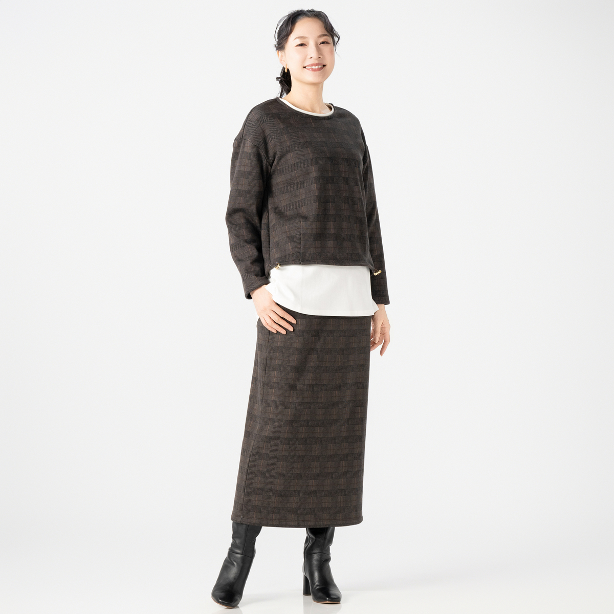 暖かな裏シャギーのプルオーバーとスカートに、チュニック*をセットにしました。エニワイズ加工は繊維中に油脂分を含み、しっとりなめらか。お出かけや日常使いにも心地よさを感じられます