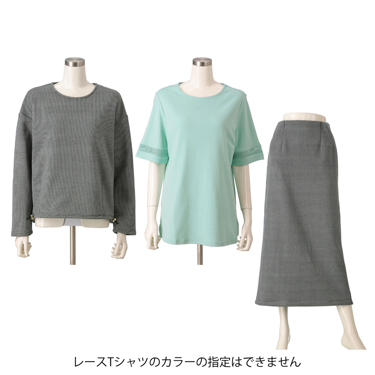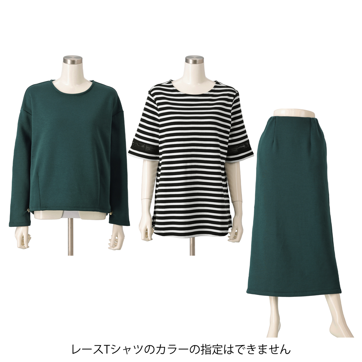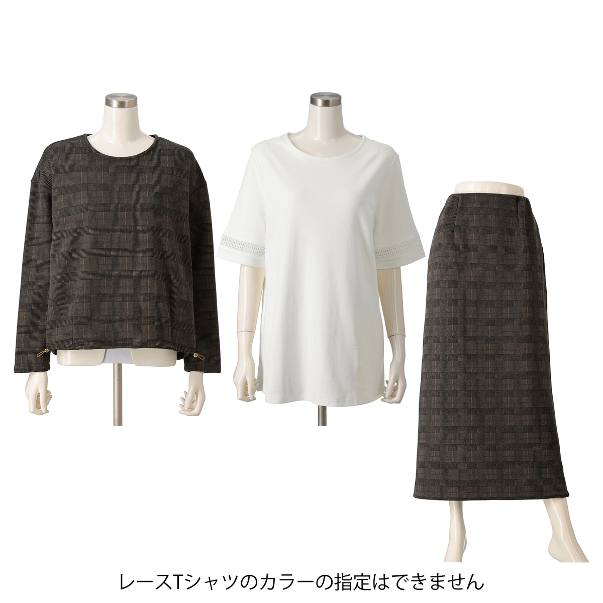 [セット内容] ・暖か裏シャギープルオーバー ・暖か裏シャギースカート ・スーピマコットン混梯子レースアクセントスリーブチュニック 計3点 ※レースアクセントスリーブチュニックは色を選ぶことができません