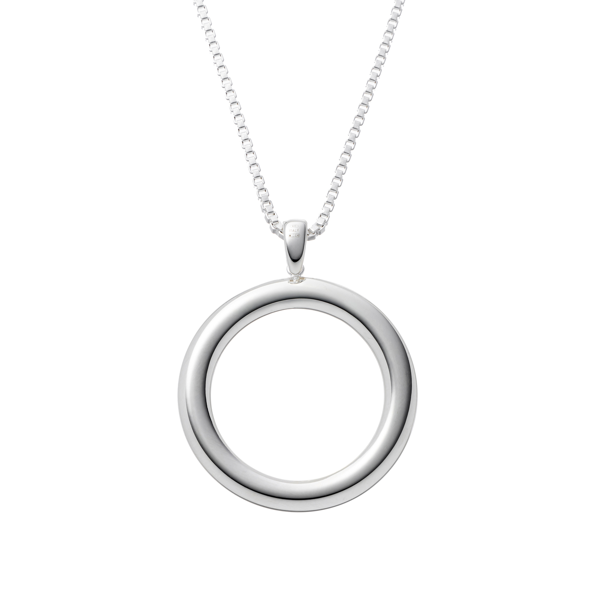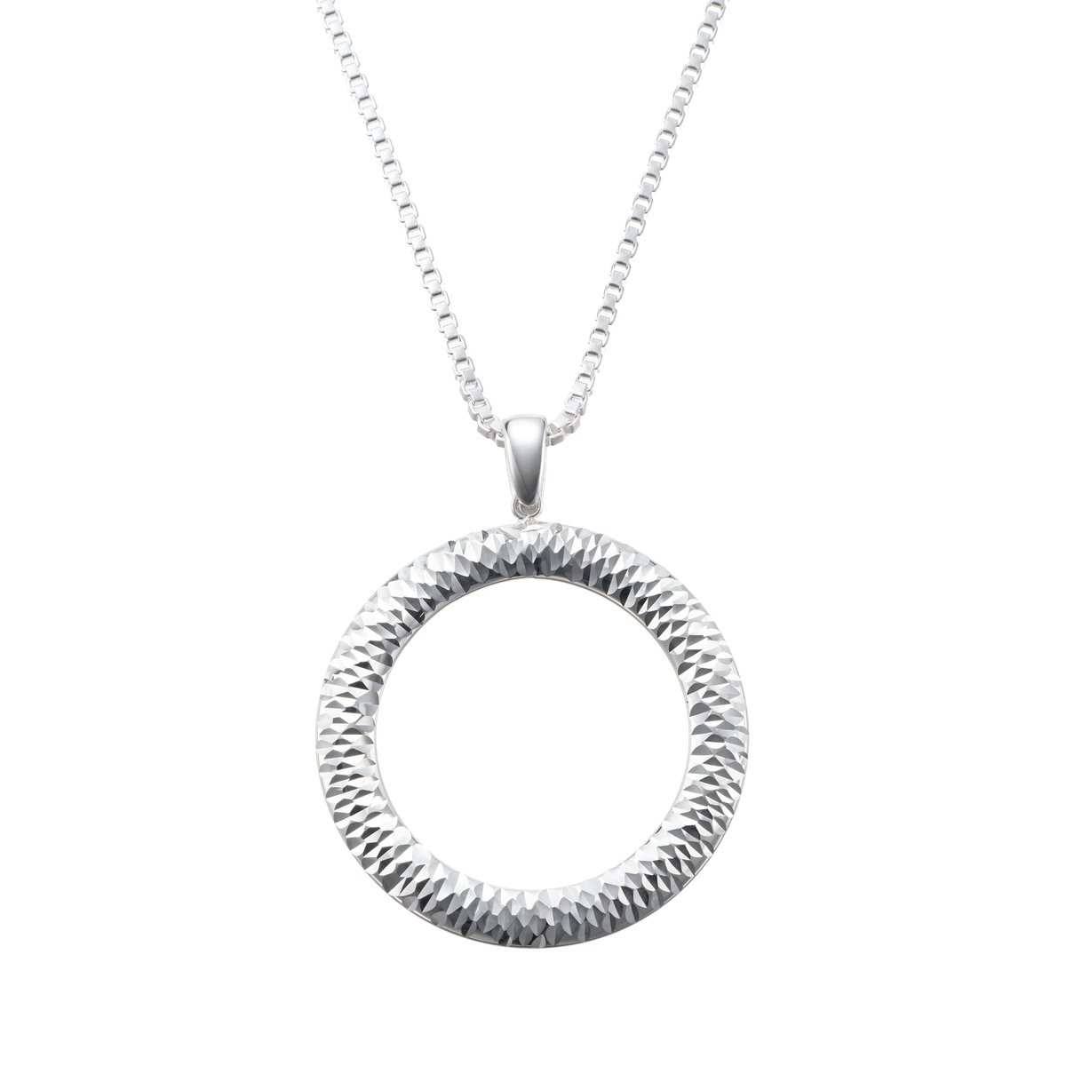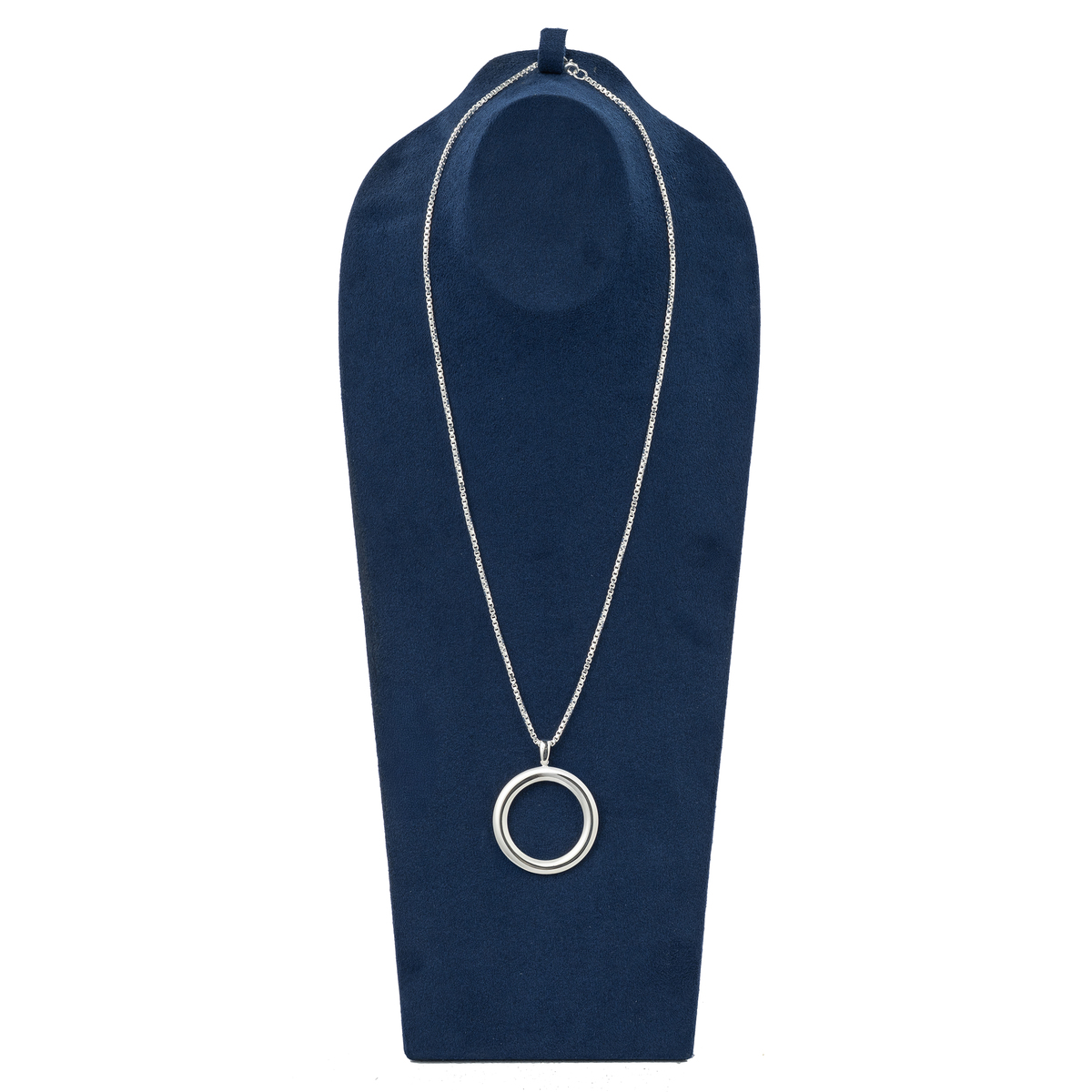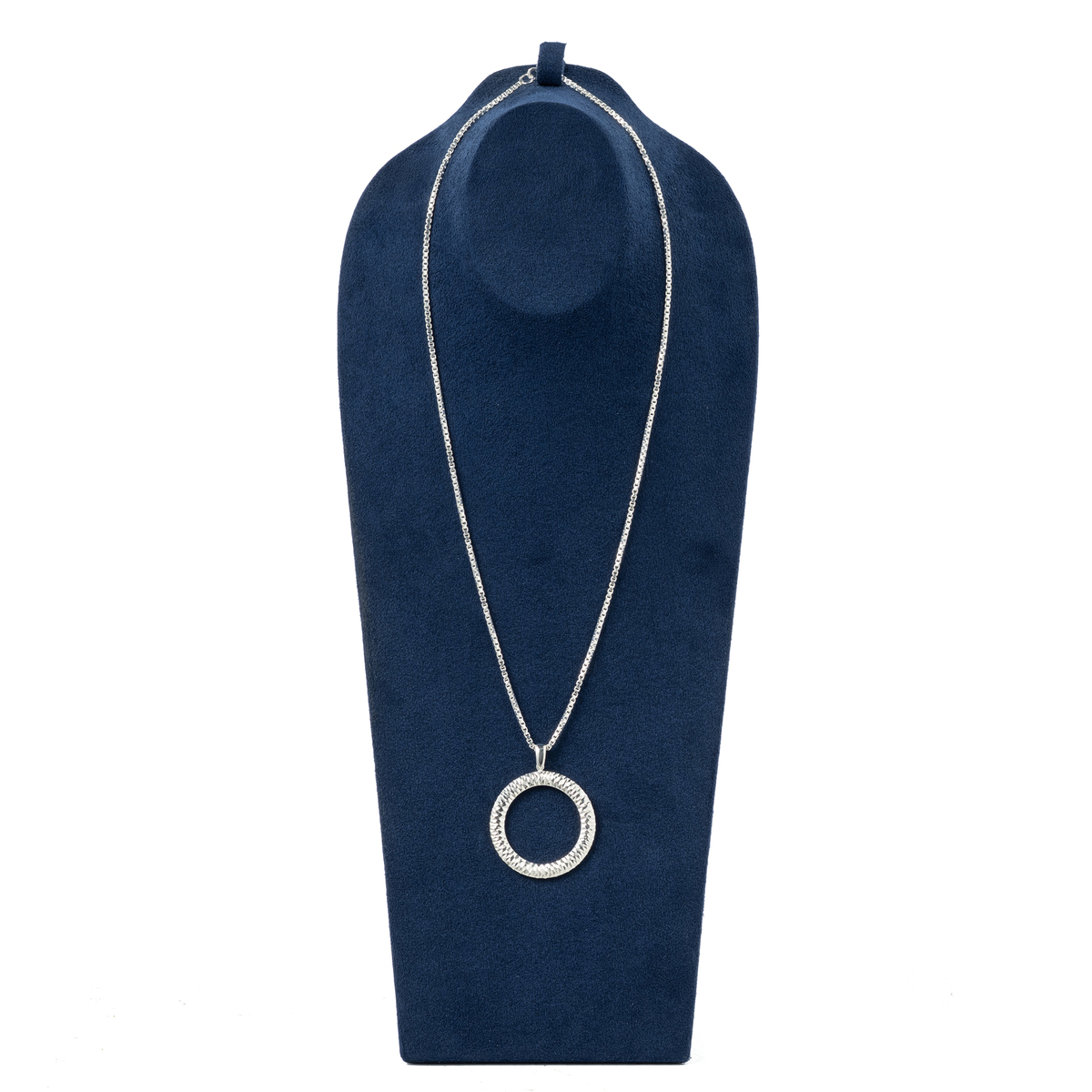 サークルモチーフのペンダントヘッドはリバーシブル仕様。片面は鏡面仕上げで上品な輝きを放ち、もう片面には細かなカットが施され、光を受けてあらゆる角度から煌めきます。大ぶりなデザインで、シーンや気分に合わせて異なるシルバーの表情を楽しめます