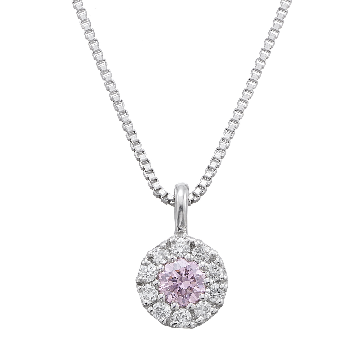 SIupで0.05ctUPのファンシーピンクカラーのダイヤモンドが際立つ華やかなペンダント。美しいピンクの輝きを合計10石のダイヤモンドで囲み、輝きを大きく見せるデザインに仕上げました