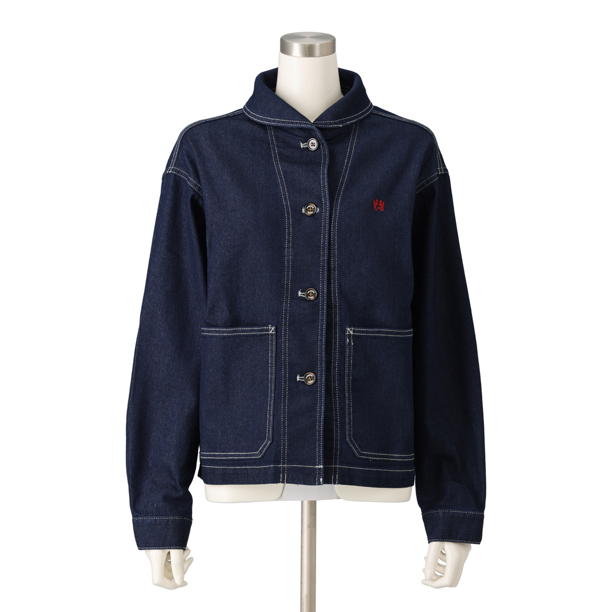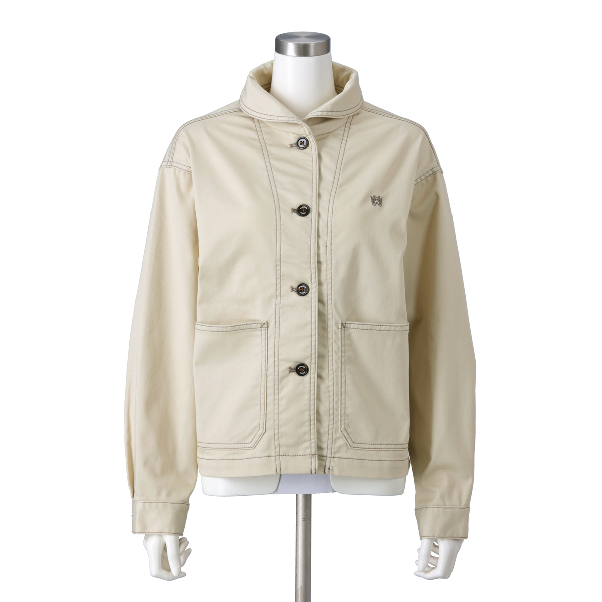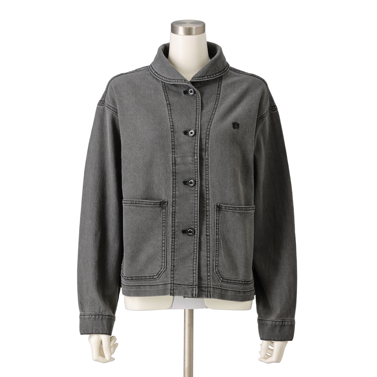 上品さをまとえるショールカラージャケット。丸みのある襟元が顔まわりを柔らかく見せ、コンパクトなショート丈でワイドパンツやスカートとの組合せもしやすいデザインです。配色ステッチをやや濃いトーンで効かせ、カジュアルな装いにも立体感を添えました。レイヤードにも取り入れやすい一着です