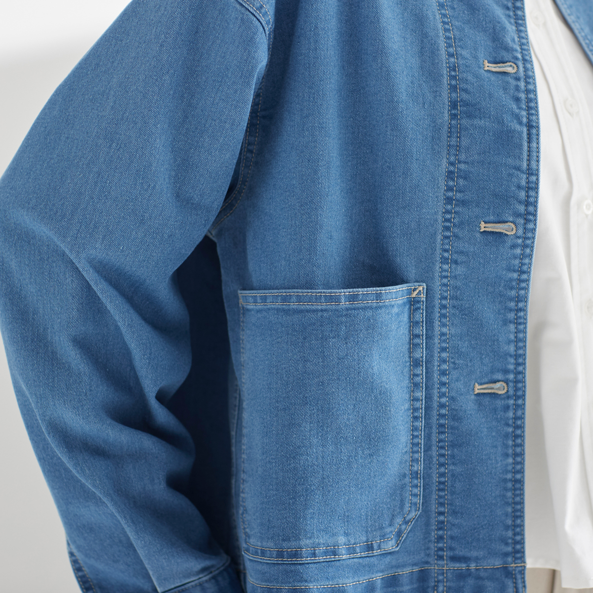 8.5ozのデニムとツイル素材を使い、時間をかけて開発した独自の風合いが持ち味。コットン混のぬくもりにポリウレタンを合わせ、しなやかな伸びとふっくらした肉感に整えました。丁寧な洗い加工で硬さを抑え、着るほどに深まる表情が味わえます