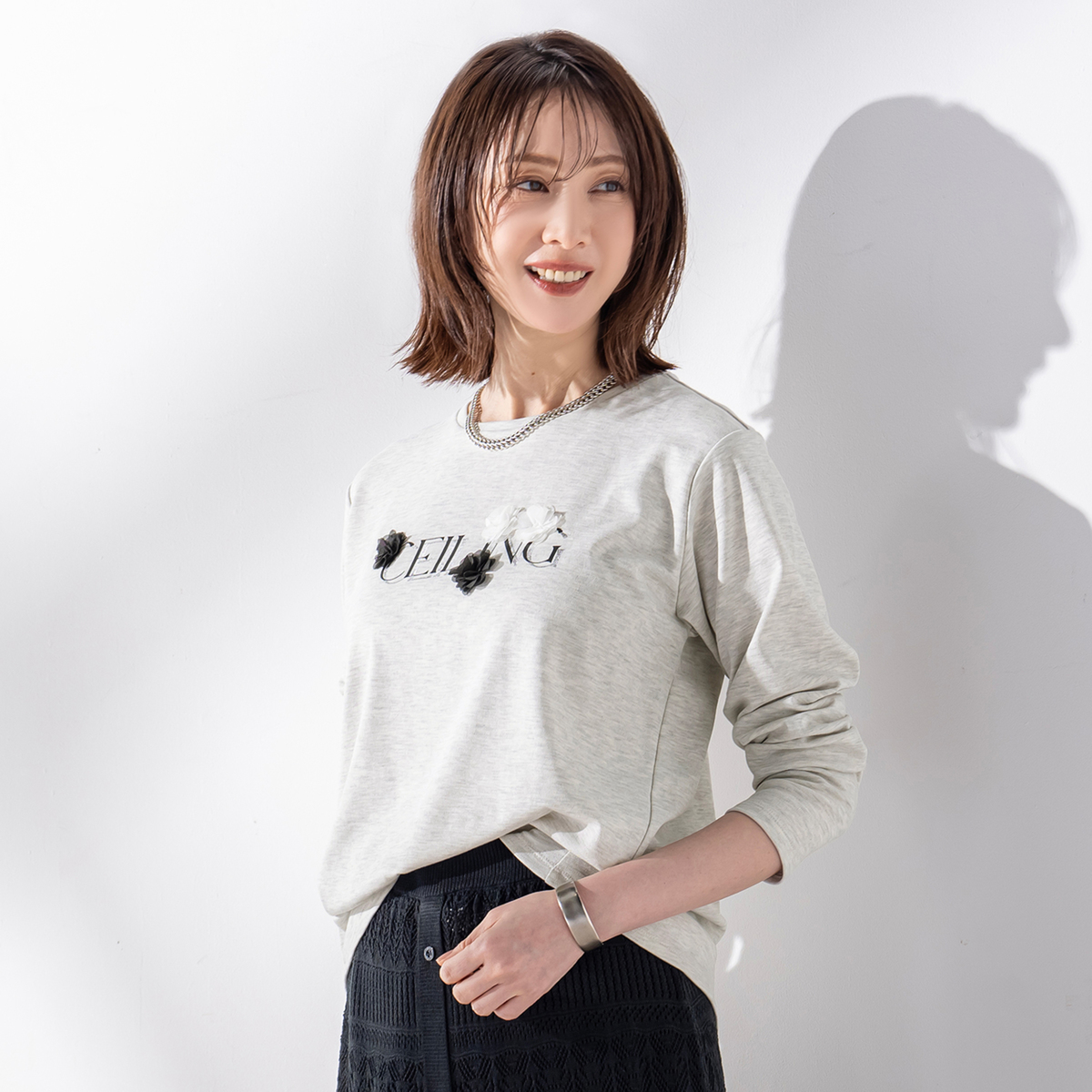 ふんわりとしたスムース生地で、心地よい着用感。デニムやスカートと合わせてカジュアルにもフェミニンにも着こなせ、日常のさまざまなシーンで活躍します