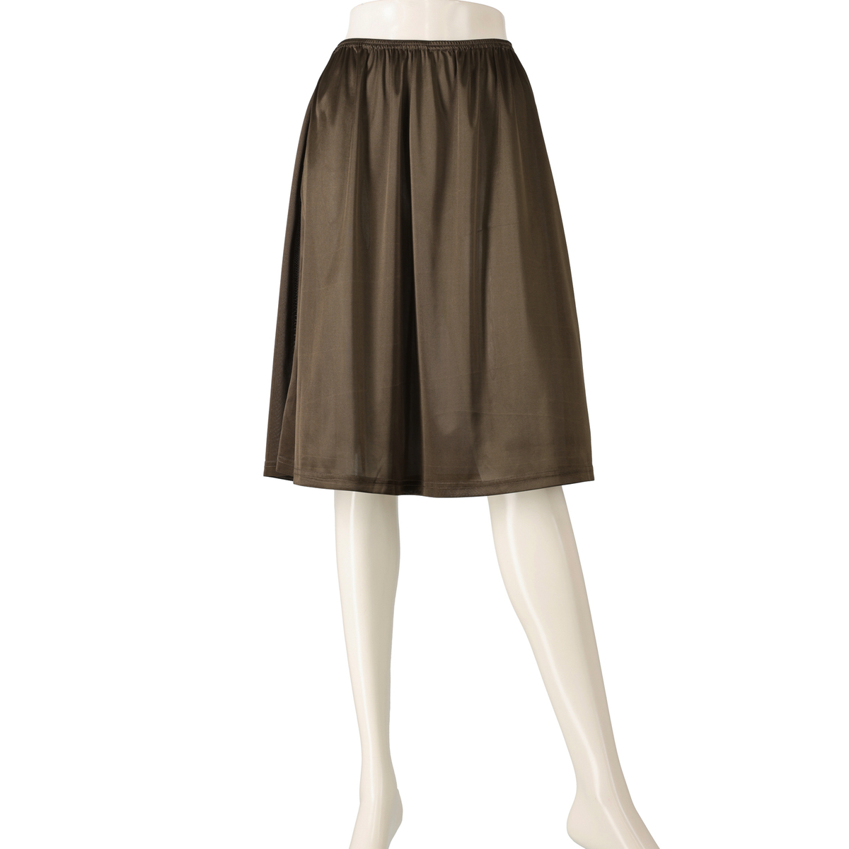 ウエストは総ゴム仕様で引っ張って穿きやすく、フロントボタンは開閉できるデザイン。ボタンを閉じて付属のペチコートを合わせればすっきりとした印象に、開けてパンツやデニムと組合せればカジュアルな着こなしも楽しめます