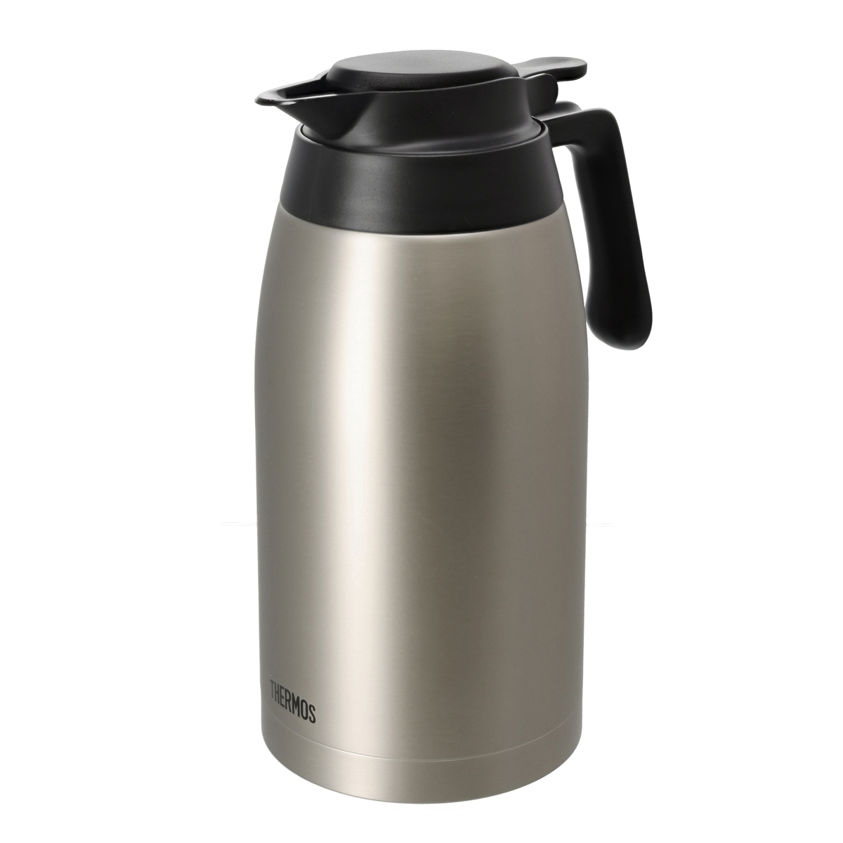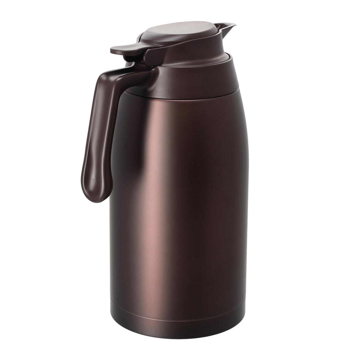 [サイズ] 約幅19x奥行12.5x高さ27cm [重量] 約700g [容量] 2.0L [材質] 内びん:ステンレス鋼 胴部:ステンレス鋼(アクリル樹脂塗装) ハンドル、上フタ、下フタ、中せん本体、バルブ:ポリプロピレン シールパッキン、ベンパッキン:シリコーンゴム [使用方法] ・中せんを矢印の方向に回して外します ・飲み物を入れる ・中せんを矢印の方向にまわして、レバーとハンドルがそろう位置まで確実にしめます ・ハンドルを持ち、本体を立てた状態でレバーを押し下げます。レバーを押したままゆっくり傾けながら飲み物を注ぎます ・レバーを押したまま、本体を立てた状態にもどします。レバーから指をはなします [お手入れ] ・ご使用後は、すぐにきれいに洗い、十分に乾燥させて下さい ・各部品を取りはずし、きれいに洗って下さい ・長期間ご使用にならないときは、きれいに洗って汚れを落とし、十分に乾燥させ、高温多湿の場所を避けて保管して下さい ■取り扱い説明を充分にご確認の上、ご使用下さい 【中国製】 [注意事項] ※使用可能:食器洗い機 ※塩素系漂白剤は使用しないで下さい(パッキンは除く) (上フタ、下フタ、中せん本体、バルブは塩素系漂白剤を使用しないで下さい 本体内側:茶しぶなど…内側のみ酸素系漂白剤を使用して下さい(目安30分) ※乳幼児の手の届くところには置かないで下さい。またいたずらには十分注意して下さい ※絶対に火にかけないで下さい ※飲みものを入れる目的以外に使用しないで下さい ※熱い飲みものを入れた場合、次の点を必ずお守り下さい ・傾けた状態、または顔などを近づけた状態で中せんのレバーを絶対に押さないで下さい ・直接飲まないで下さい ・飲みものを注ぐときは本体を急に傾けないで下さい ※中せんを取り外す時はいったんレバーを押して蒸気を逃がしてから取り外して下さい ※ストーブやコンロなどの火気に近づけないで下さい ※中せんは2つの専用パッキンを正しく取り付けて下さい ※中せんはレバーとハンドルがそろう位置まで確実に閉めて下さい ※電磁調理器(IHクッキングヒーターなど)で使用しないで下さい ※飲みものの量は止水部より約1cm下までにして下さい ※次のものは絶対に入れないで下さい ・ドライアイス、炭酸飲料、お茶の葉、果肉、牛乳・乳飲料・果汁など腐敗しやすいもの ※落とす・ぶつけるなど強い衝撃を与えないで下さい ※飲みものは早めにお飲み下さい ※改造、分解、修理は絶対にしないで下さい ※電子レンジに入れないで下さい ※お手入れの際、次の点を必ずお守り下さい ・煮沸はしないで下さい ・食器洗浄機を使用する場合は中せんのバルブ、上フタ、下フタをはずして下さい ※飲みものを注ぐ際は本体をまっすぐ立てた状態でレバーを押してから注いで下さい ※レバーを押した状態で、注ぎ口以外の方向に傾けないで下さい ※大きな氷は押し込まずに小さくしてから入れて下さい ※飲みものを入れた状態で長く放置しないで下さい ※不安定な場所に置かないで下さい ※本体に飲みものを入れるときは転倒に注意して下さい ※製品には必ず専用の部品を取り付けて下さい ※真空二重構造の内部(真空層)から水の音がする場合は使用しないで下さい ※中せん、レバーを持って運ばないで下さい ※レバーを押した状態で持ち運ばないで下さい ※中せん組み立て後はレバーを数回押し、中せんが正常に動くことを確認して下さい ※みそ汁、スープ等塩分を多く含んだものは入れないで下さい ※熱い飲みものを入れた直後や、しばらく経った後に中せんから音が鳴ることがあります。本体内部の圧力変化により発生するもので、異常ではありません。音が鳴った場合は、レバーを押すと音が止まります ※本体の口元に熱いヤカン等をあてないで下さい ※本体に中せんを取り付けたり取り外したりする際はレバーを持ってまわさないで下さい ※油脂、かんきつ類の果皮の成分が含まれる飲み物を長期間使用した場合、部品が変形する可能性があります