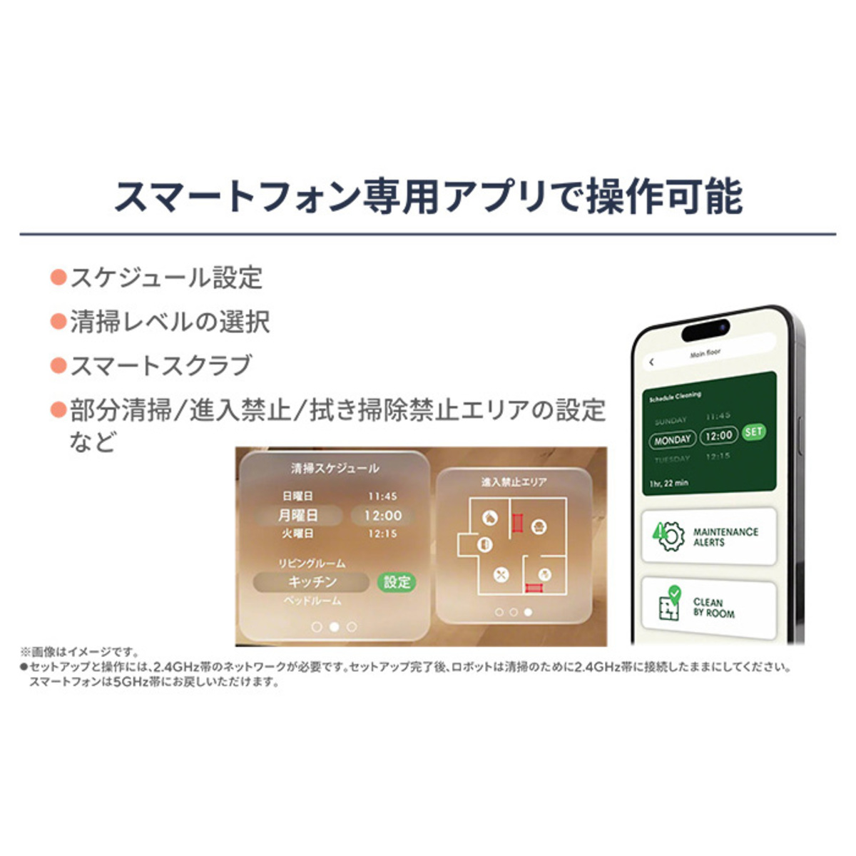 本商品(ロボット及び充電ステーション)で清掃を開始するにはRoomba(R)Homeアプリのご使用は必須ではありません。Wifiに接続しなくても、「掃除機+拭き掃除」や「掃除機のみ」の機能は使えます。設定が分からない、使うのが大変そうといった不安から購入を控えていた方でもご使用いただけるモデルです(「拭き掃除のみ」はWifi接続時のみ選択可能)